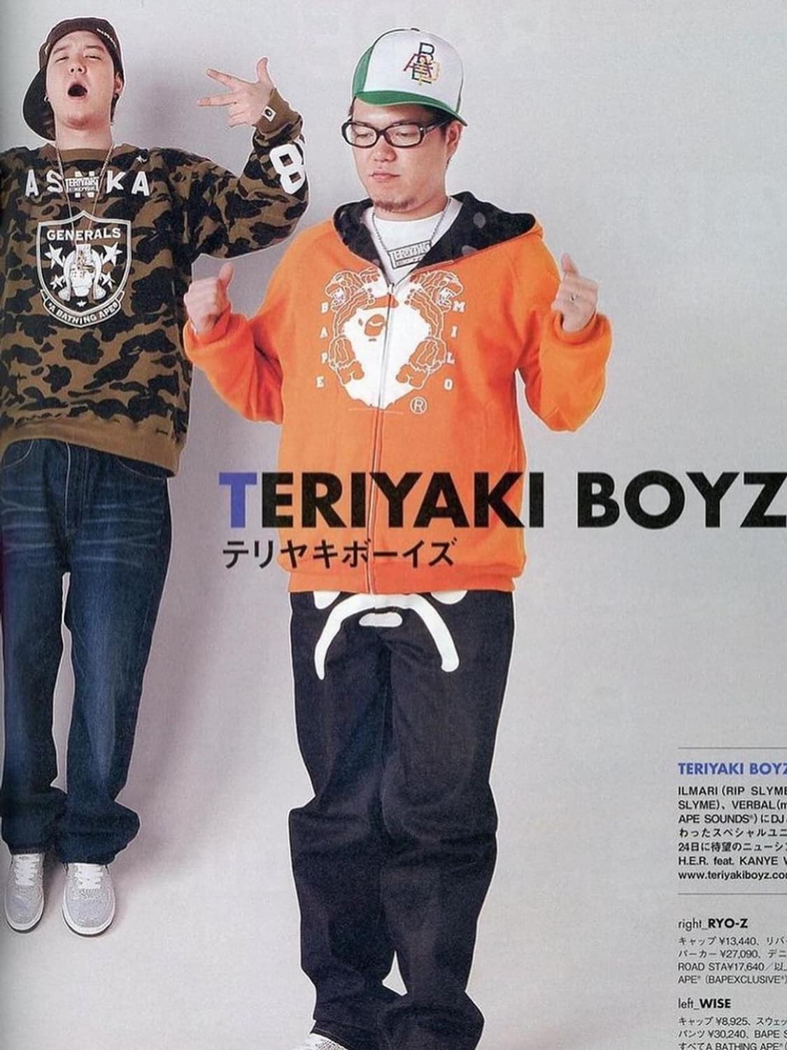 Teriyaki Boyz는 BAPE의 ‘공식 랩 그룹’으로 소개되곤 했다. 멤버 Verbal의 회고에 따르면 시작은 NIGO가 “일본 MC들을 미국 프로듀서 트랙 위에 올리는” 컨셉을 구상하면서부터였고, 그 실험이 한 곡, 한 팀, 하나의 프로젝트로 확장됐다. 중요한 건 이 출발이 ‘음악을 위한 음악’이라기보다 브랜드, 장면, 네트워크가 함께 움직이는 기획이었다는 점이다.