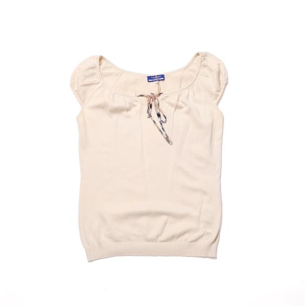 • 빈티지 버버리 블루라벨 노바체크 반팔 티셔츠 38 퍼프소매 딱붙핏