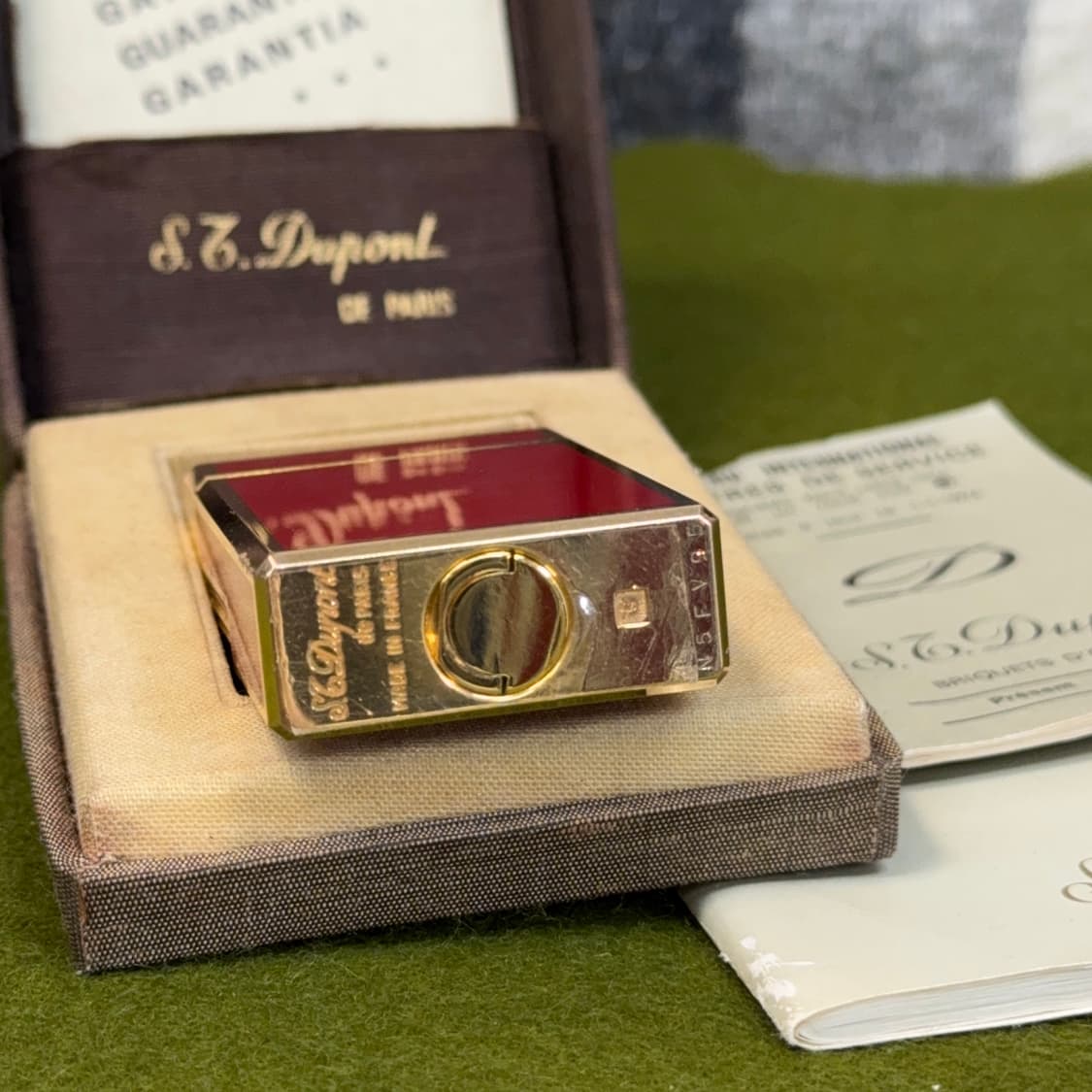 -명품 브랜드 S.T. Dupont(듀퐁)사의 라인 1 시리즈 레드래커 골드 라이터 입니다. 1980년도 듀퐁에서 동양의 전통 기법인 옻칠을 하여 색감을 입혔고, 당시 저 듀퐁 라인1 시리즈에 옻칠을 하셨던 디자이너들은 이니셜을 저렇게 넣었답니다. 이러한 요소들이 일종의 콜라보로 작용하고 애초에 수량도 많이 나오질 않다보니 지금은 아주 보기드문 희귀한 모델이 된거고요! 그때 당시 케이스 그대로 보증서 까지 같이 포함입니다. •컨디션: 년식에 비해 케이스 제외하고는 라이터 상태 좋으며 작동 아주 잘됩니다. 다만 가스 주입구를 분실해서 수리를 맡겼고요. 워낙 드문 모델이다보니 부품이 없어 최대한 맞는걸 끼고 그 위에 투명 테이프를 붙인 상태입니다. 생각보다 티 안나고 가스도 전혀 안샙니다. 이제는 구할수도 없는 모델이며 이정도 상태면 컨디션 좋은수준이라 생각합니다^^