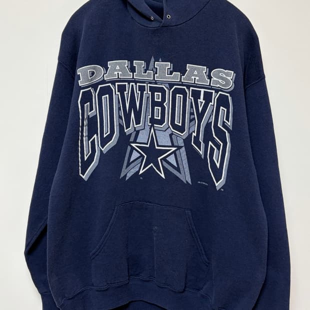미식축구팀 댈러스카우보이 프린팅 스웻셔츠입니다. 두께감이 있는 원단감 소매스우시는 자수입니다. 어느정도 사용감은 있으나 큰 하자는 발견하지못했습니다 세탁완 표기라지 체감 넉넉한 라지사이즈 Size가슴63총장71