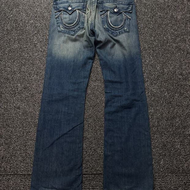 #truereligion 트루릴리전 월드투어 부츠컷 데님 팬츠 Size:32inch ⠀ Price: ⠀ (밑위/허벅지/밑단/총장) 26/32/28/107 (cm) Condition 9/10 -하자없이 깔끔한 컨디션 -색감 핏 모두 좋으며 가성비 켄드릭 라마 ⠀ #burnout_sell