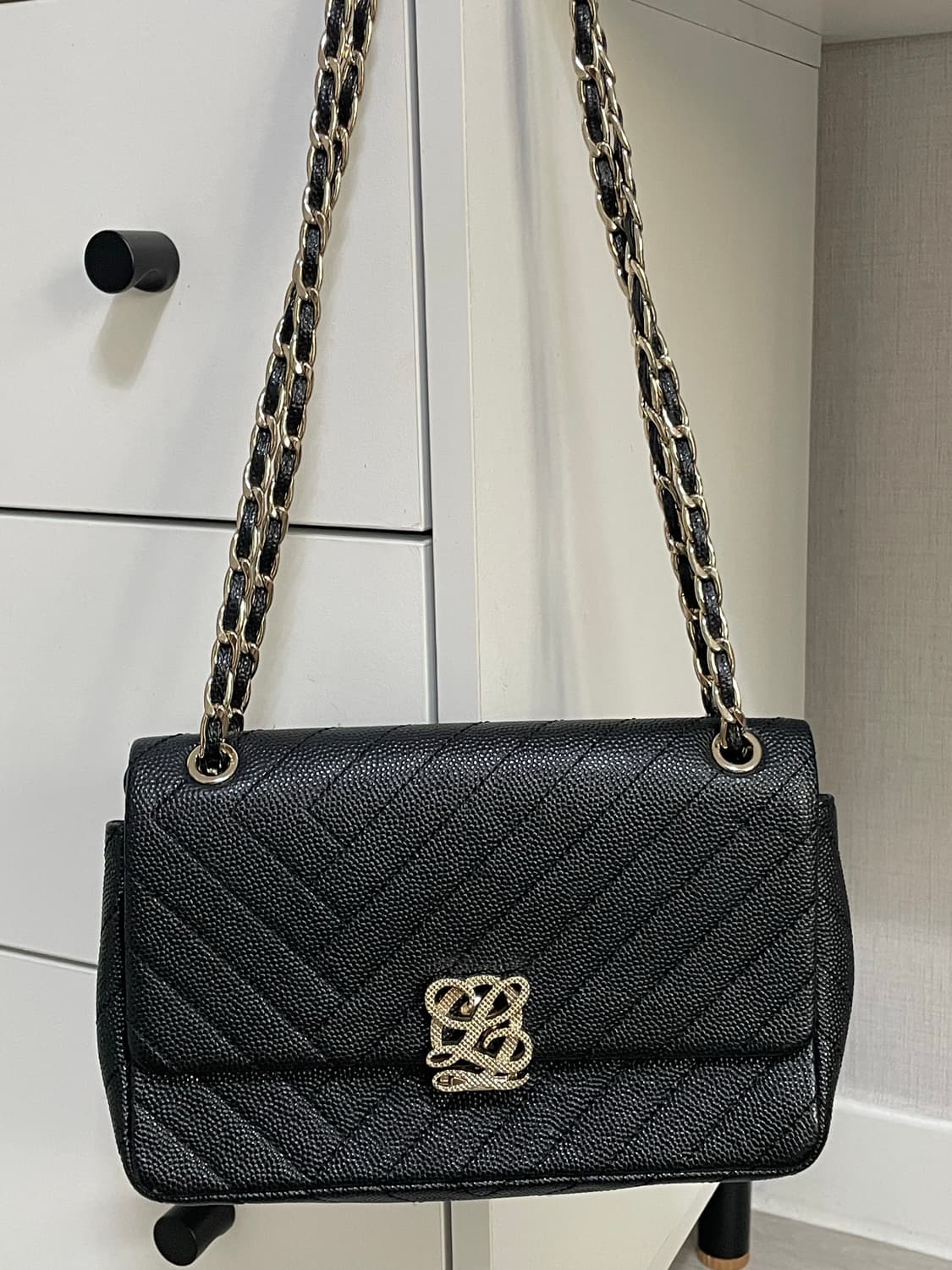 루이까또즈 검정가방입니다. 보관을 잘 못해서 약간 찌그러져있어요. 안에 물건 넣으면 티 안나요. 그래도 감안해서 싸게 팝니다. 그외에 상태 아주 좋음. 환불 불가능 반값탁배 가능)택배비 구매자 부담