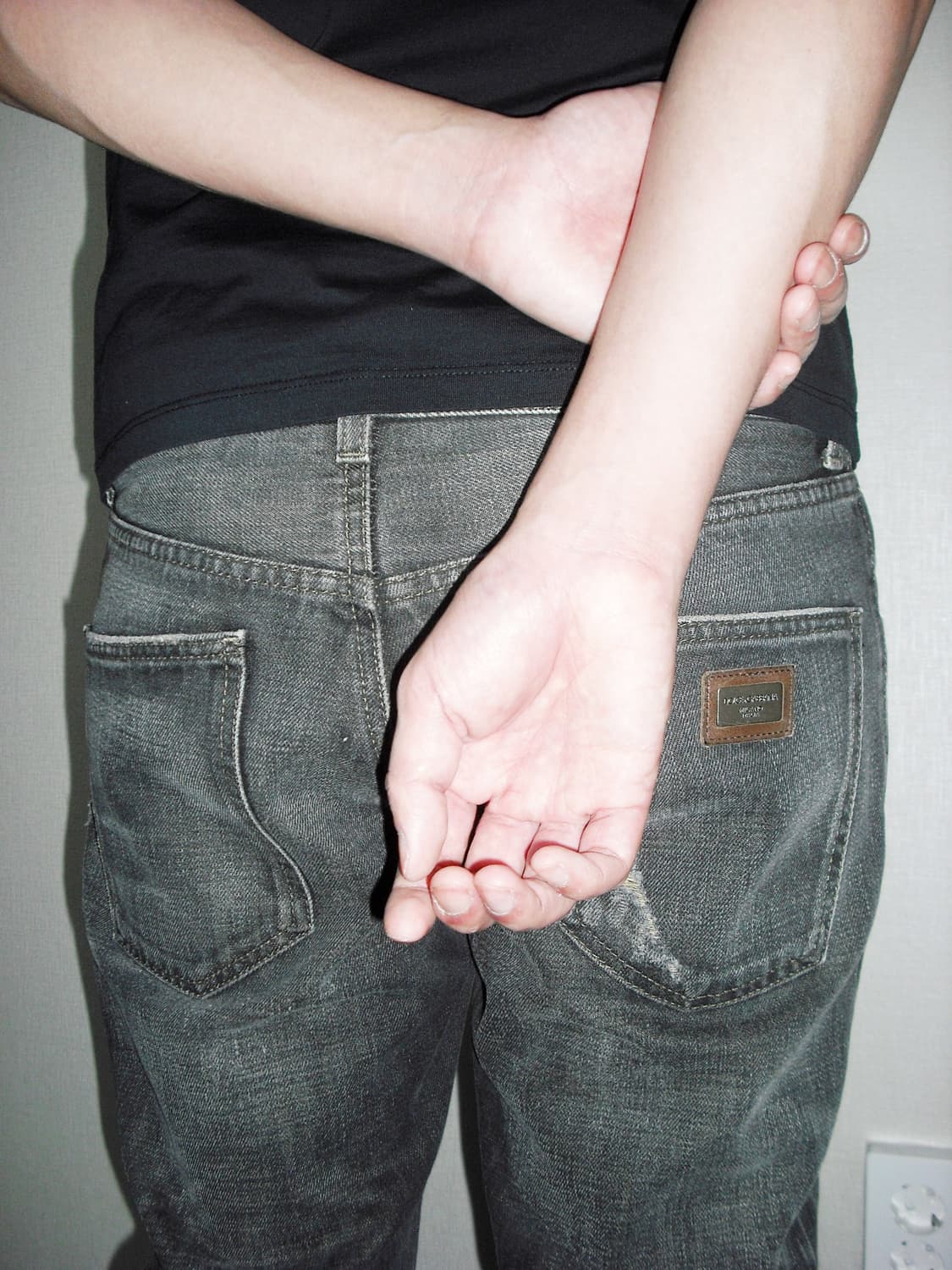 2000년대 추정, 표기 사이즈 IT 46, 슬림 핏, 14 골드 라인, 데미지 연출. 100% Cotton Made in Italy 허리 40 밑위 19 허벅지 30 인심 80 아웃심 101.5 밑단 18