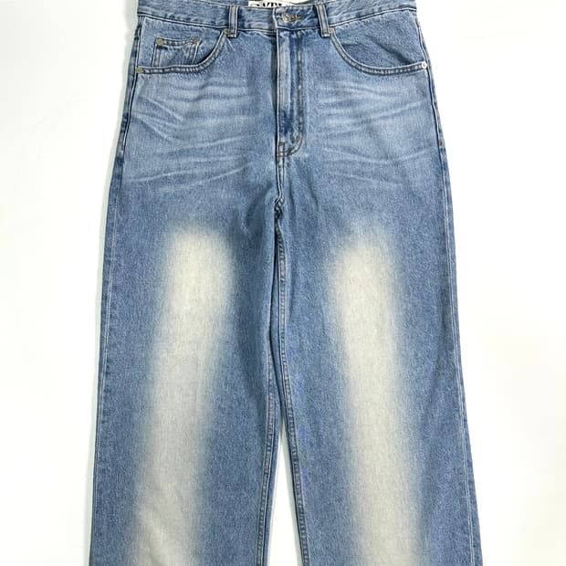 [M]세터 와이드 워시드 커브드 데님 팬츠 라이트 블루