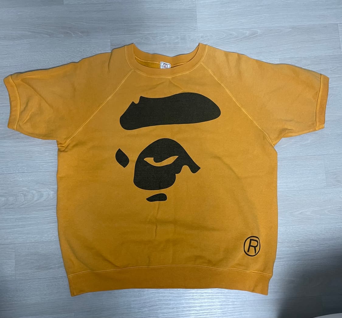 90-00s A BATHING APE 반팔 스웻셔츠 (M) 입니다. 90년대 말에서 00년도 초(니고가 전개하던 시절)에 특히 베이프가 많이 만들던 하프스웻입니다. 여름철 단품은 물론, 쌀쌀해진 날씨에 셔츠 등과 레이어드 하기 좋아보이며 특별한 하자없이 양호한 컨디션 큼지막한 사루 로고 포인트가 특징. 표기 사이즈 M, 남녀 모두에게 추천드립니다. 실측(cm):총장 60/가슴 59/ 어깨 레글런/팔 35 쿨거시 상식선에서 네고가능.