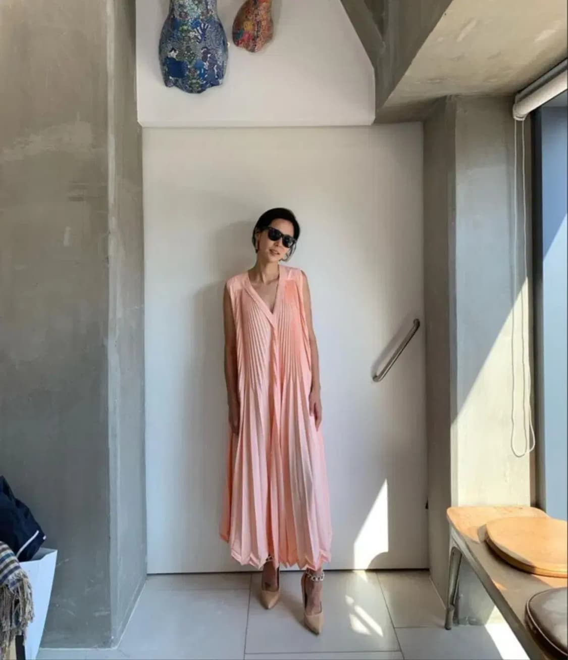길이 122cm 김나영이 착용한 제품과 동일하고 21년 pre fall 쇼라인입니다 벨트는 구성품이 아니고 코디용이에요 네이비 컬러입니다 xs이지만 플리츠 특성상 사이즈에 꽤 여유 있어요 66초까지 좋습니다 구매가가 150만원 정도 됩니다 저렴하게 올려요