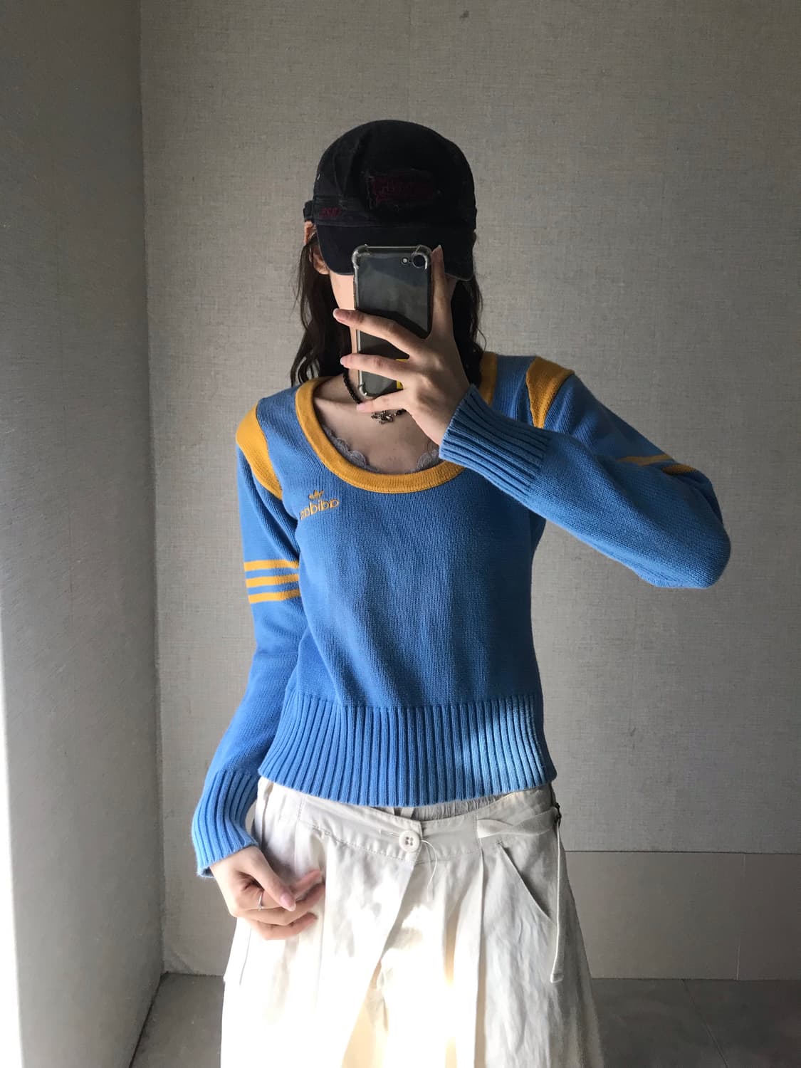 ¥ Old Adidas sky blue knit Size: 총장48 가슴52