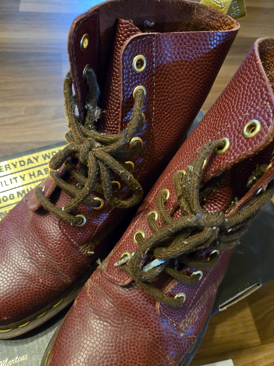 2010년 발매한 닥터마틴 50주년 한정판 입니다. 1460족만 생산되었습니다. 당시에 공룡가죽 느낌으로 제작되었다고 유명했었습니다. 이베이 등에서 비싸게 거래되고 있습니다. 사용감이 많은 빈티지로 저렴하게 내놓습니다.
