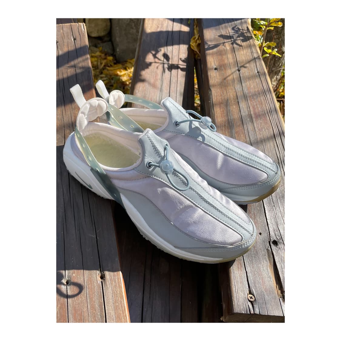 Nike Air Visi Havoc 2001 size: 265 us 9.5 uk 7 wmns condition: new price: 159000 2000년대 초 나이키에서 전개한 슬링백 뮬들 중의 하나입니다. 여성용으로 나온 신발이라 사이즈가 작게 나왔지만 특이하고 매력적인 쉐입으로 여성분 남성분 다 착용 가능합니다. 신발 상단에 보이는 끈이 신발끈을 대체해서 조이고 풀고 할 수가 있습니다. 색상은 실버/화이트로 빛에 따라 어퍼 부분의 달라지는 색감 또한 매우 매력적인 제품입니다. 새상품이지만 연식에 따른 약간의 오염과 변색은 존재합니다.