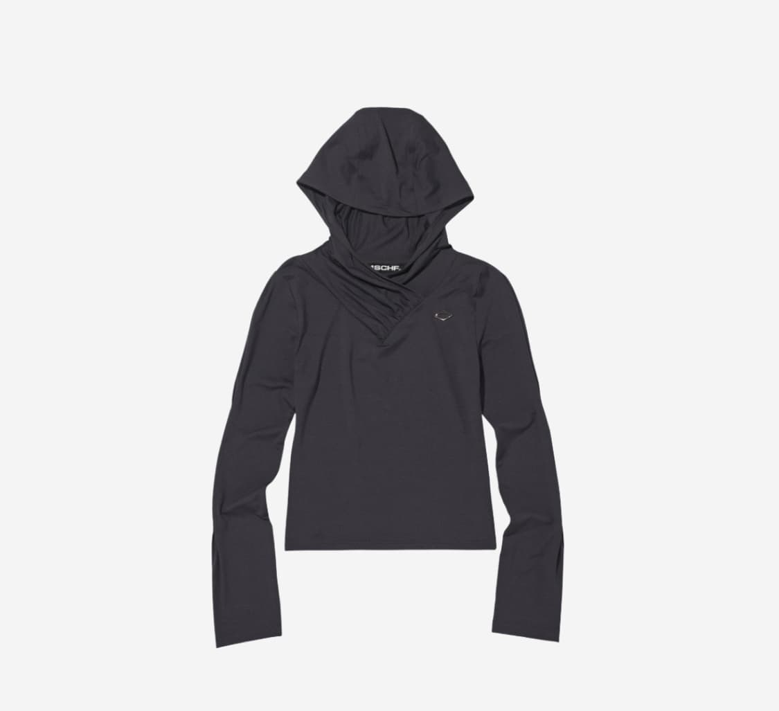 [S] 미스치프 후드 셔링 오버랩 탑 화이트