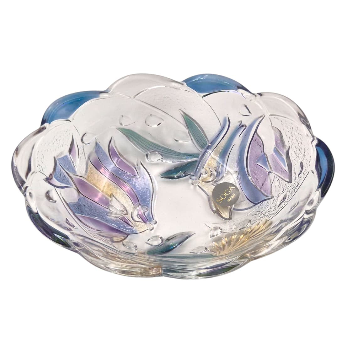 80s 일본 소가 글라스에서 제작 되었던 컬러 바다 생물 플래터 볼드한 글라스 소재, 회오리처럼 들어간 테두리 쉐잎 안에 입체적인 2마리의 열대어, 수조, 조개가 알록달록 들어가 키치하며서 몽환적인 볼이랍니다. 깊고, 넓은 사이즈의 볼로 원하시는 디저트 플레이팅부터 악세사리 트레이까지 더욱 다양하게 사용이 가능해요. 택 붙착, 미사용 되었던 아이로 5p 입고 size: 가로19.5cm x 세로14.5cm x 높이6cm
