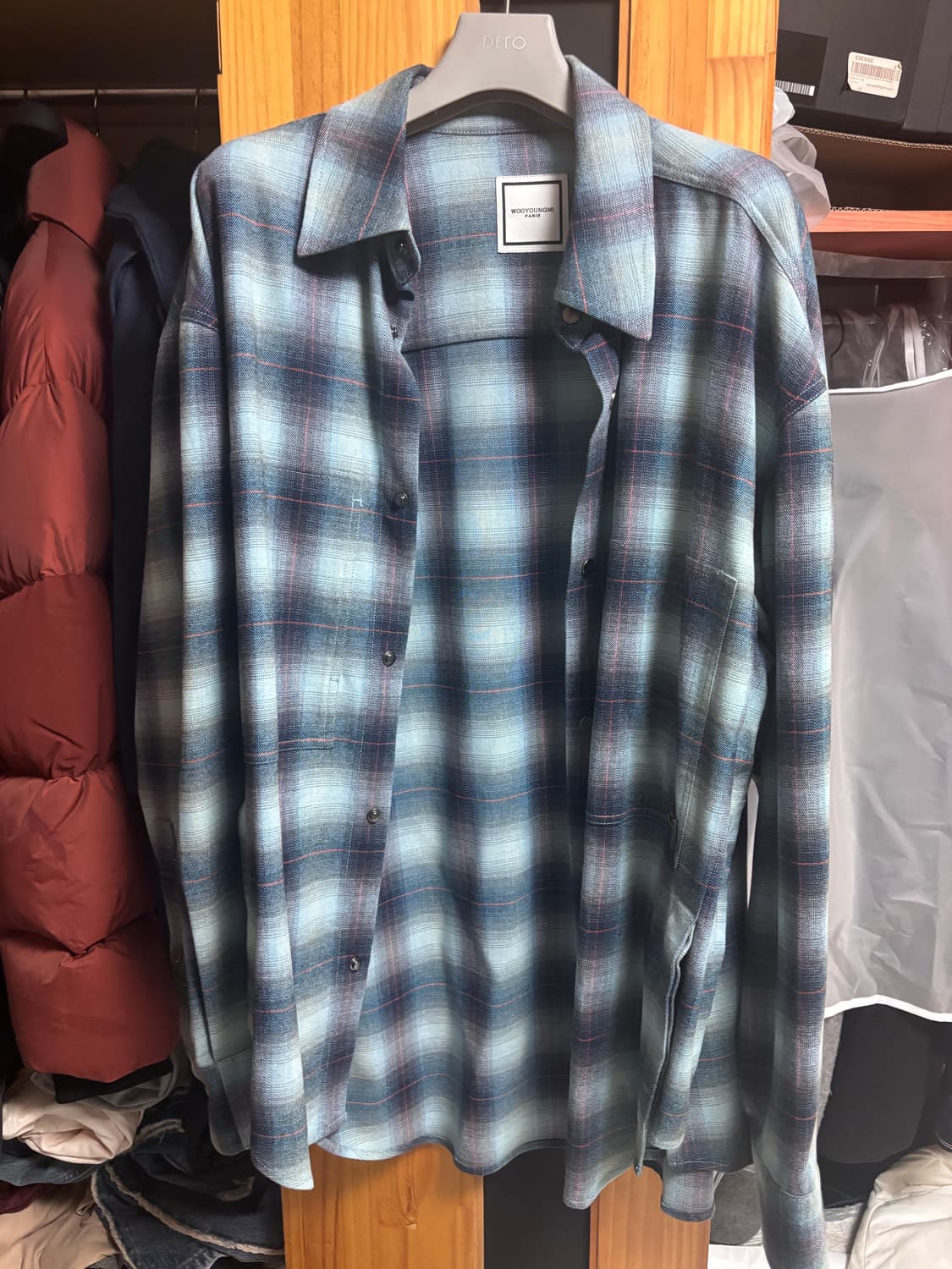 22FW 우영미 명작 체크블루 셔츠입니다 3-4번 착용했으며 컨디션 좋습니다 사이즈 46 (105) 정도의 사이즈감 편하게 문의주세요 이체시 30만원 직거래가능합니다