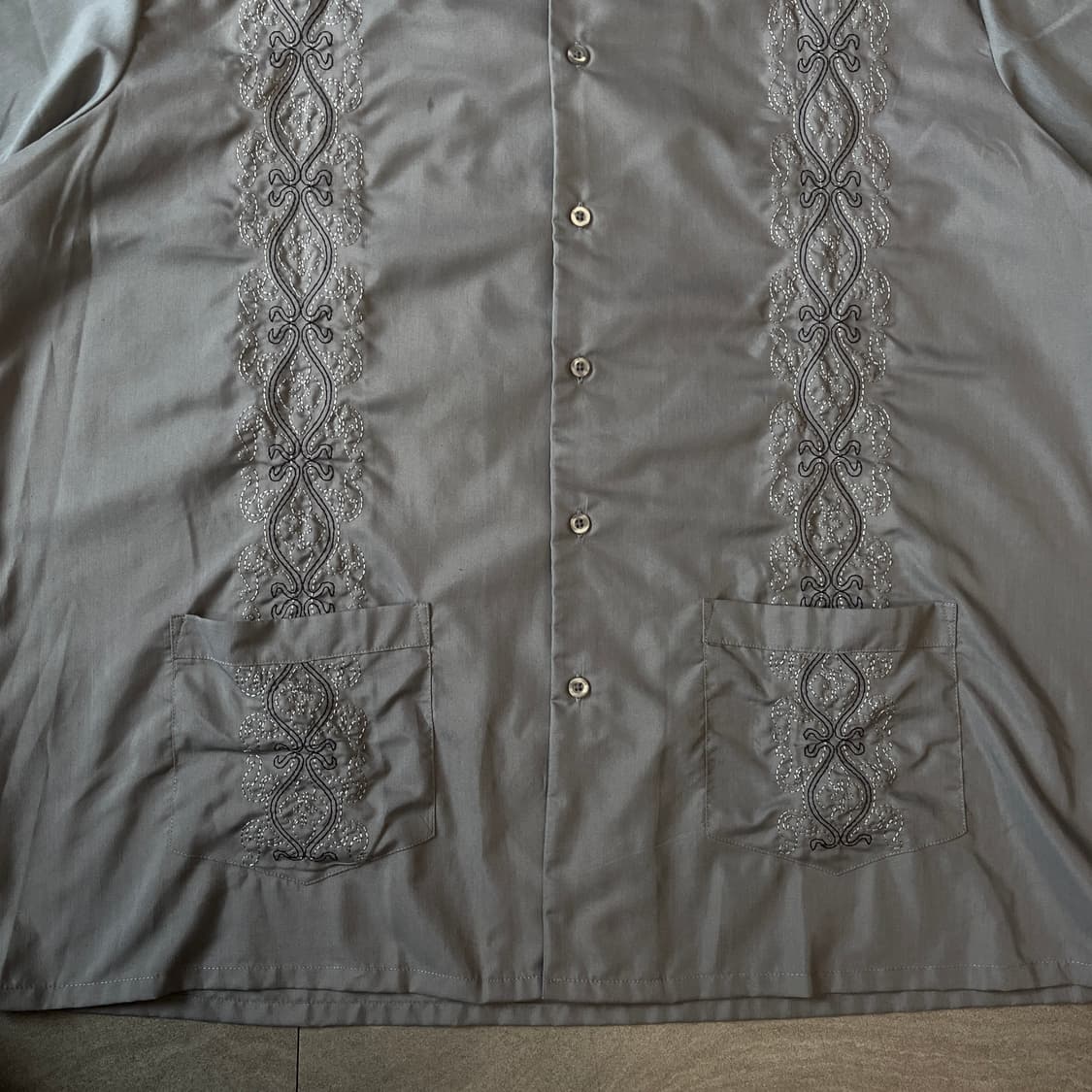 No.8904 #도떼기구매가능 Vintage Haband Guayabera gray shirt 빈티지 하밴드 구아야베라 그레이 셔츠입니다. -‘구아야베라(Guayabera)’라는 이름의 쿠바 셔츠는 고급 소재의 셔츠 입니다. 보통 4개의 주머니가 달린 것이 특징인데, 이 주머니는 구아바를 넣는 용도였다고. 구아바는 쿠바의 대표적인 과일이며 옛 쿠바인들이 말을 타고 길을 가다가 구아바 나무를 마주치면 열매를 따서 주머니에 넣으려고 이렇게 만들었다는데 물론 지금은 구아바를 넣는 용도로 주머니를 사용하진 않겠지만, 여전히 그 디자인을 유지하고 있습니다. -사진에서 보시듯이상품 자체가 매우 양호하게 보존되어 있습니다. -사이즈 L 추천드립니다. •Price - 69,900 •Color - gray •Size - L 총장73 어깨50 가슴65 팔길이26 •측정위치에 따라 1-3cm 오차가 있을 수 있습니다.) •모든 상품 세탁, 고온 스팀이 완료 된 상품입니다. •배송전에 한번 더 스팀 작업 진행합니다. •구매 전 공지사항과 사이즈를 다시 한번 확인 부탁드립니다.