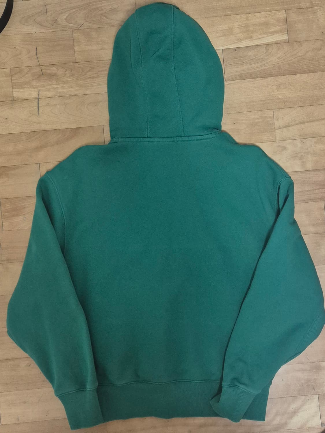 적당히 크롭하고 오버한 핏입니다. 상의 100 입으시는 분들한테 적당할 것 같습니다. 실사진보다 조금 더 채도 높은 초록색입니다.