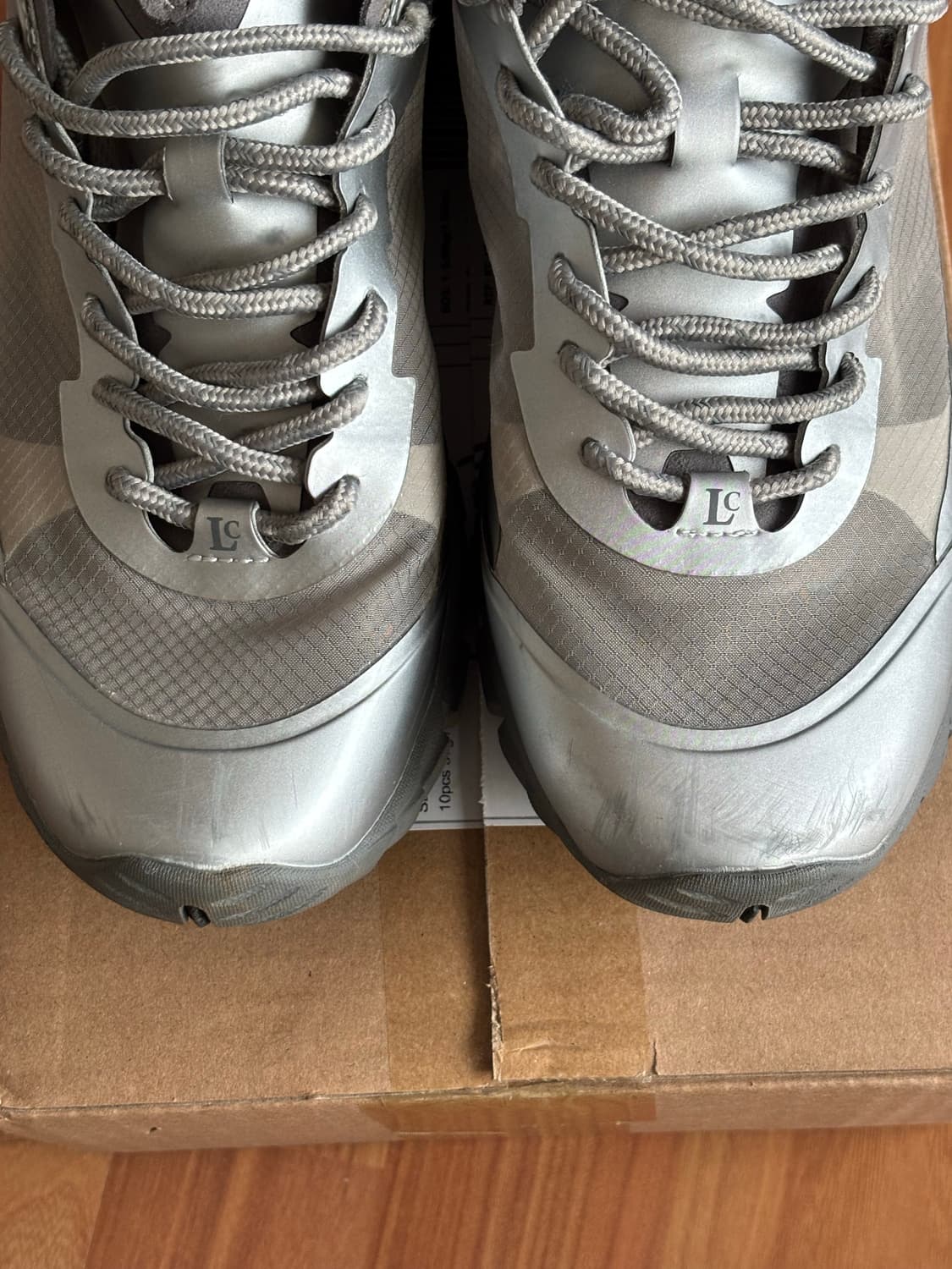 사이즈가 작게 나온 편이라 원래 230-235 신는데 이건 240 했는데 잘 맞았습니다. 제품 실착 많이 하지 않아서 내부나 바닥 깨끗한데 앞코 스크래치가 잘나는 소재라 그 점 감안해서 저렴하게 올려놓습니다!
