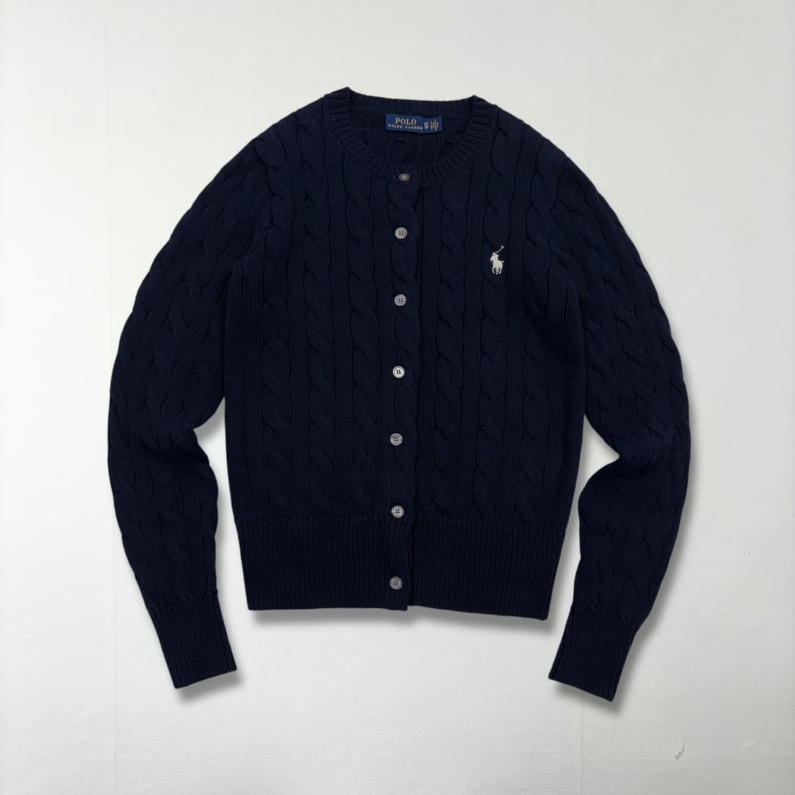 (Women) Polo by Ralph Lauren navy cotton cable round neck cardigan Size : 표기 women XS 가슴단면 42 총기장 56 팔길이 61 어깨 36