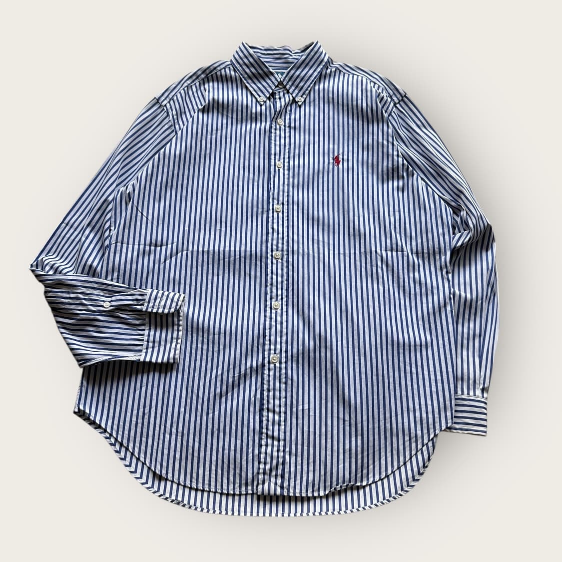 사이즈 : L 실측 XL ( 어깨 51 가슴 63 총장 79/83 ) 블루톤 컬러 디자인의 스트라이프 셔츠입니다. 강렬한 레드포니 로고 디자인이 매력적인 제품이네요. ✔️배송비는 4,000원 (2개이상 구매시 무료배송 ) ✔️빈티지 제품입니다.생활 오염이나 사용감 존재 할 수있습니다.