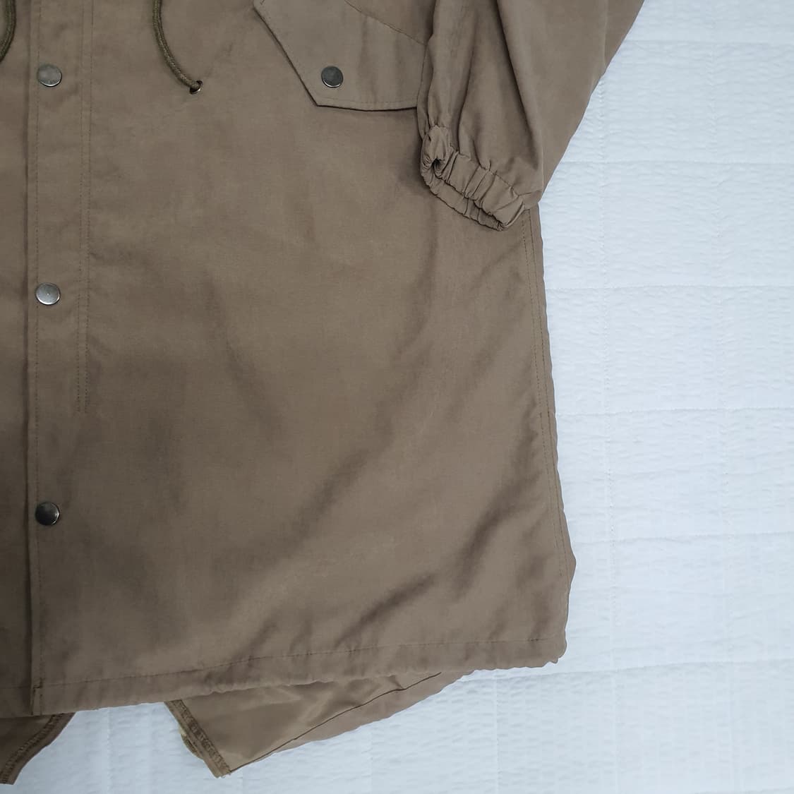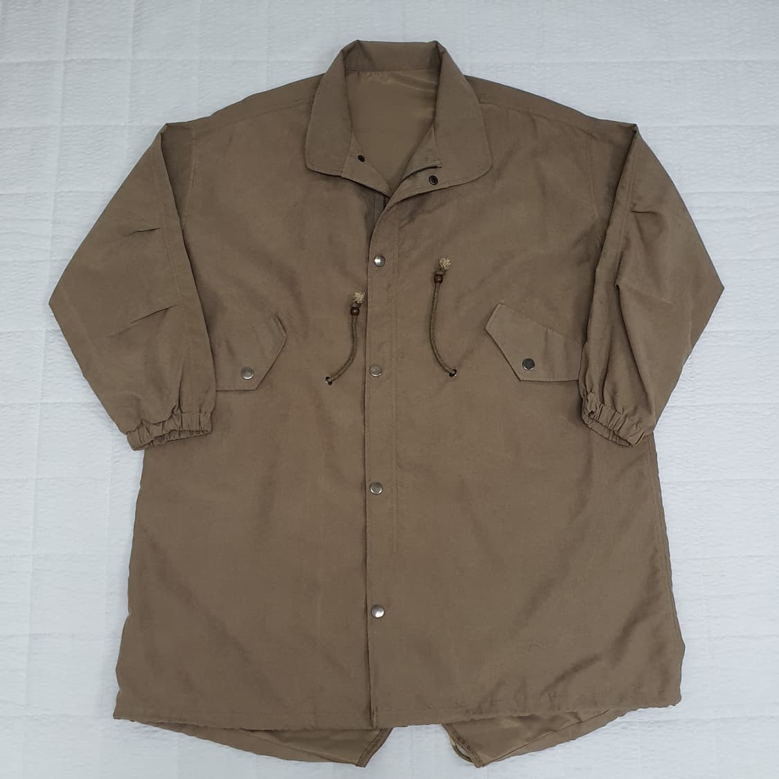 단면 68 총기장 92 멋진 야상 점퍼입니다. 안감없는 소재이구 선물받구 착용안해서 상태 깨끗합니다.보관미스로인해 아래끈쪽에 색차가 있으나 신경쓰일정도 아님니다. 프리사이즈라 105에두 여유있게 입을수 있습니다. 2벌 구매시 배송비 무료 중고O 새옷X