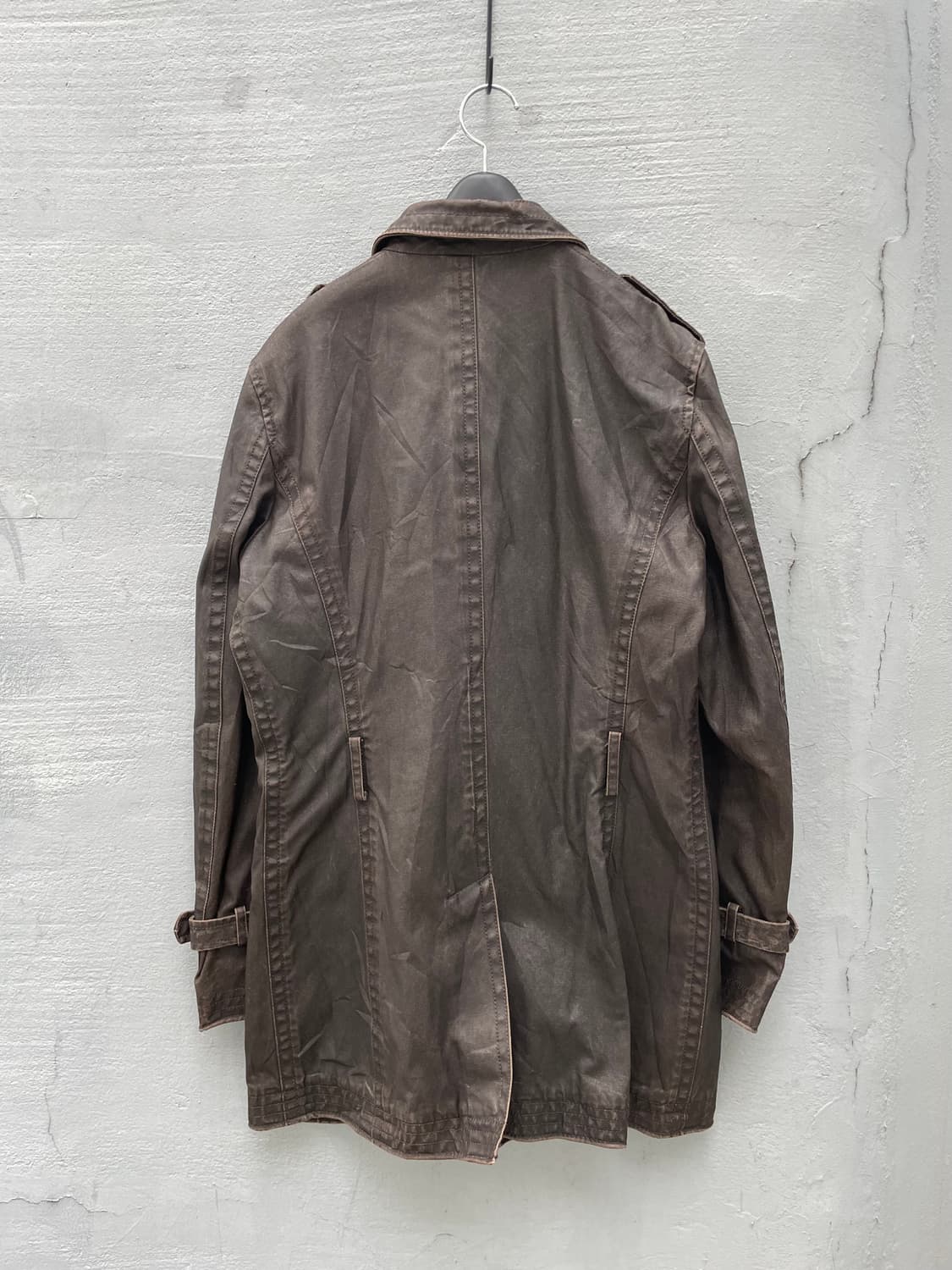 TETE HOMME coated military jacket 키미노리 모리시타, 카즈타카 카토 주역의 테테옴므 초기 피스 빈티지한 워시드가 매력적인 밀리터리 테이스트의 매끈한 코티드 자켓 자연스러운 사용감 존재하는 컨디션입니다. 어깨 45 가슴 51 총장 85 팔 64 (cm)