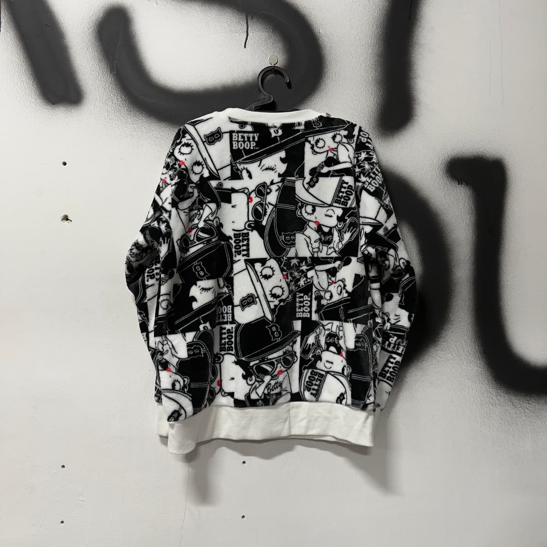 택표기 L사이즈의 부드러운 플리스소재로 제작된 베티붑의 프린팅이 전면 들어가있는 맨투맨과 조거 팬츠의 셋업입니다. 국내 100사이즈 정도의 사이즈감이며 개별 구매도 가능합니다. 상의 어깨 : 레글런 가슴단면 : 60 총장 : 70 하의 허리 : F 허벅지 단면 : 35 총장 : 98 모든 치수는 센치 기준입니다. 여러상품 혹은 쿨거래시 할인 가능합니다!