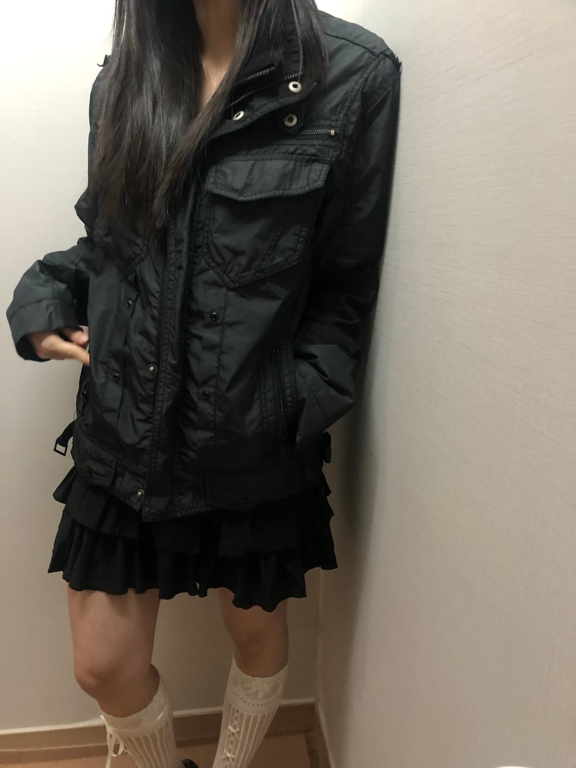 black funk jacket Price : 3.2 - 펑크 무드의 디테일들이 훌륭한 블랙 컬러의 자켓입니다. • 가슴 단면 47 • 총장 63