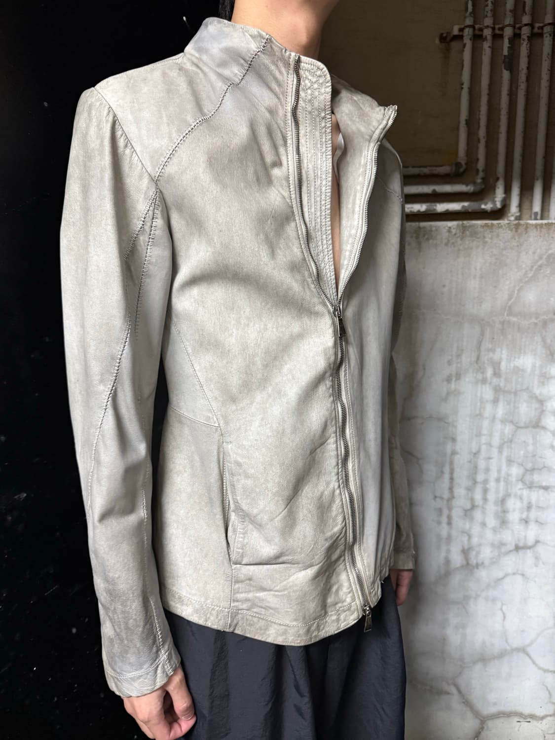- Condition A - 가죽 데미지는 모두 디테일 입니다. 이탈리아 아티잔 브랜드 디에찌세이제로오또사의 아카이브 제품입니다. 동일 매물 찾아보기 힘들고 해외 시세 매우 고가에 형성되어있습니다. 독특한 제봉이 ccp를 연상케합니다. - Size 총장74 가슴49 소매66 어깨49