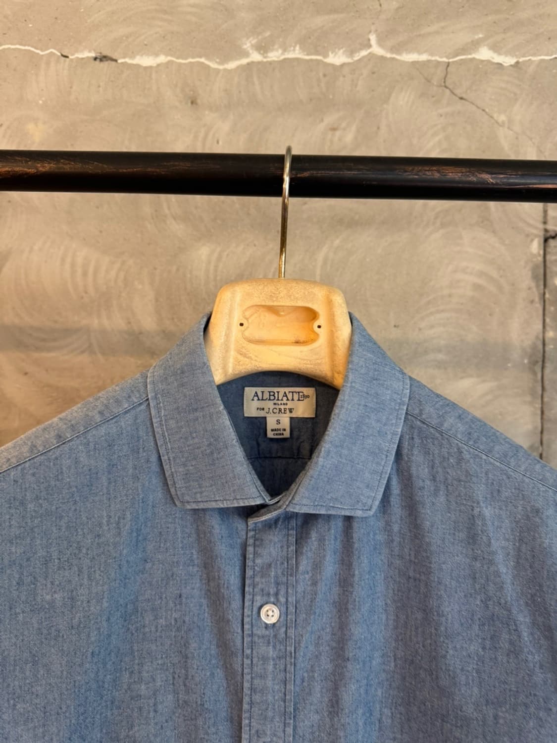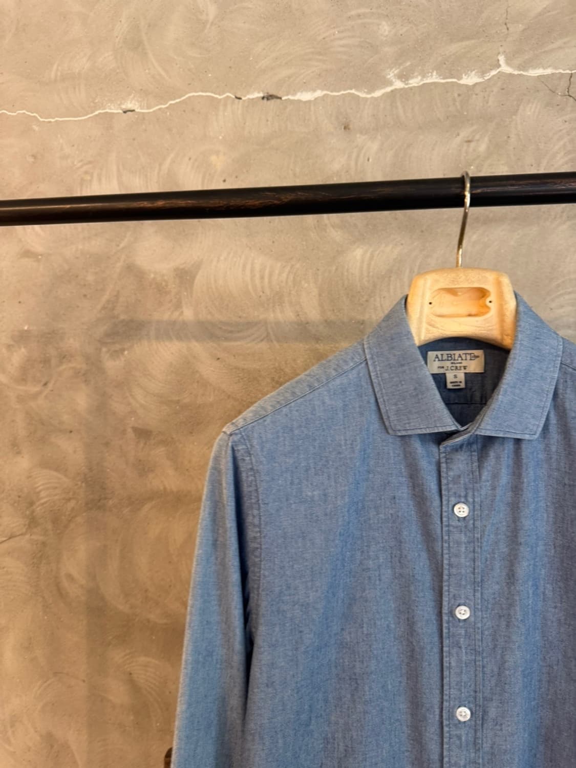 보다 드레시한 무드로 연출된 제이크루의 한장입니다. 셔츠가 지닌 범용성에 테일러드자켓과의 상성을 우선 고려한 한장으로 사이즈 슬림 100 추천합니다. 감사합니다.
