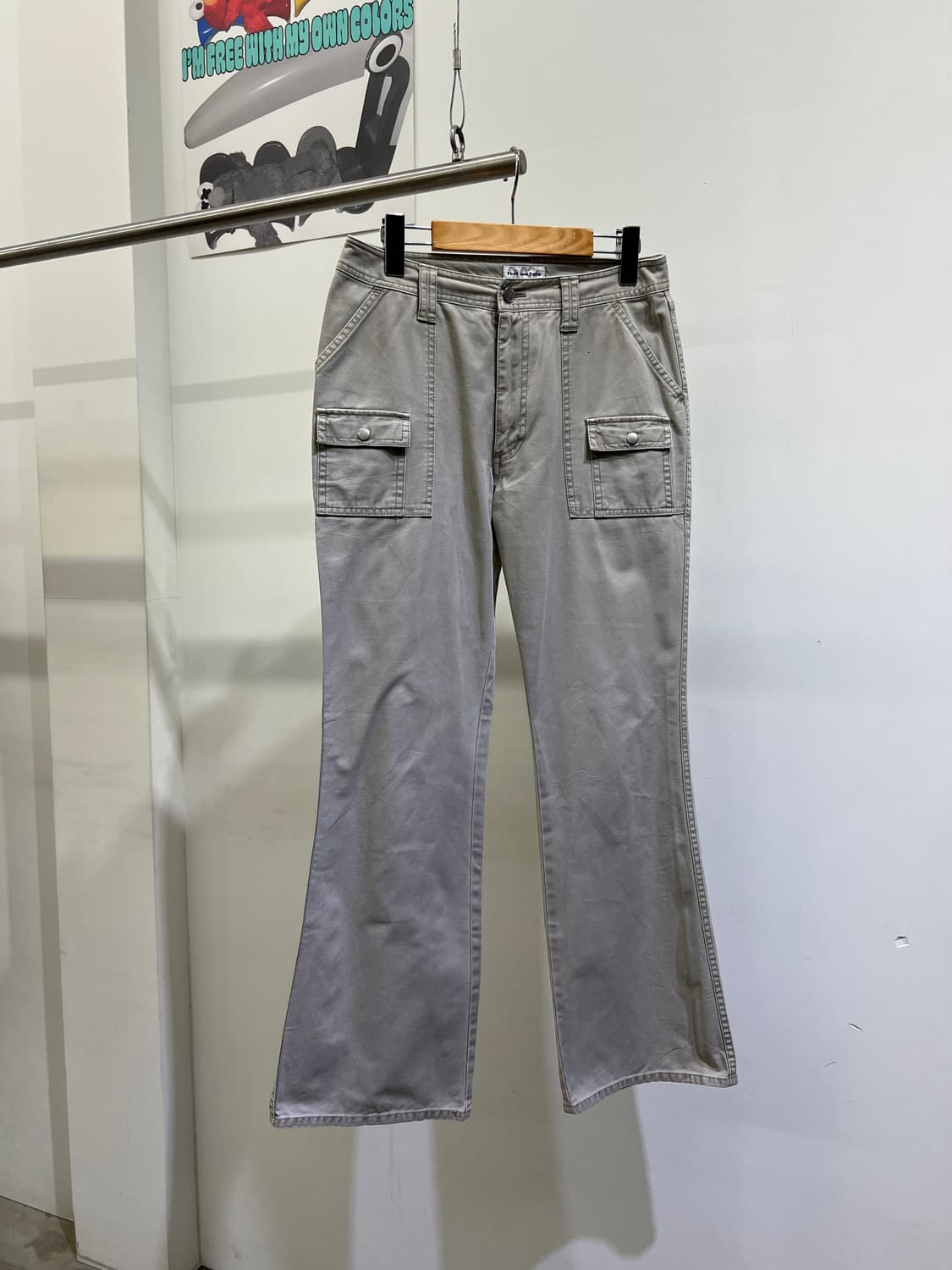 세컨핸즈 상품 상품 컨디션 : A 소재 : 면 100% 사이즈 실측 (단위 : cm 단면 기준) 허리 37 / 밑위 27 / 허벅지 30 / 밑단 24 / 총장 97