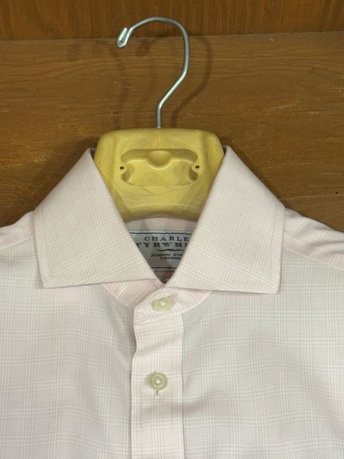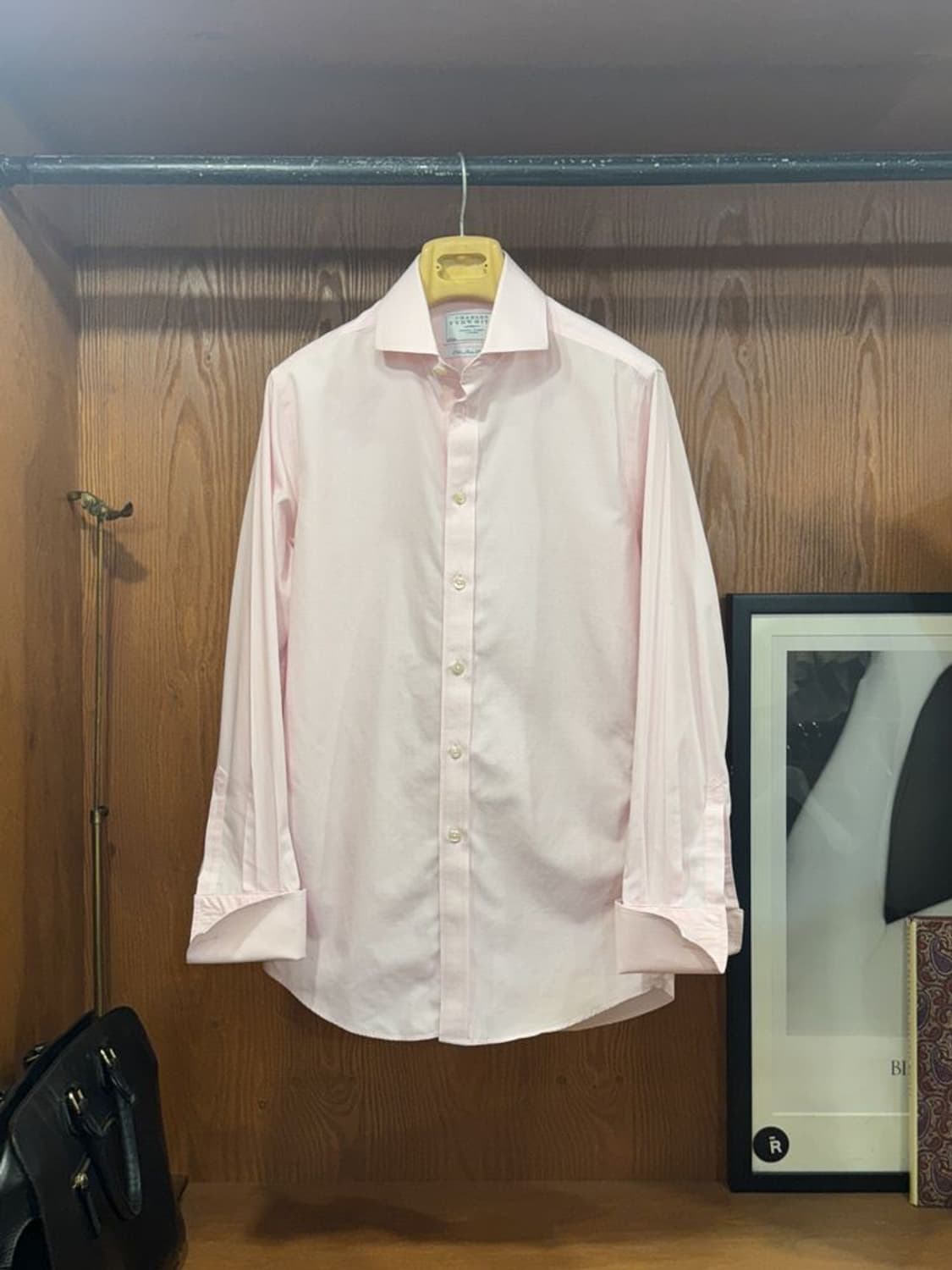 지극히 영국적인 무드를 벗어날 이유가 없다 생각하는 찰스 트윗의 드레스셔츠입니다. 커프스타입으로 낸 소맷단은 오직 포멀한 수트 안에서 자리잡았으면 하는 마음일 겁니다. 만듦새와 패브릭 둘다 잡은 기품있는 모델로 토마스 핑크셔츠와 곁줄 수 있겠네요. 사이즈 95 권합니다. 감사합니다. 측정사이즈 (단위 : cm, 단면기준) 라벨사이즈 어깨 가슴 소매 총장 38 43 49 60 76 상품 코드 A01512 상태 : A ( 상태 좋음 ) 패브릭 : 코튼 100% 색상 : 라이트 핑크 판매점 : 매장 사이즈 : 38 실측 사이즈(cm) : 어깨 : 43 가슴 : 49 소매 : 60 총장 : 76