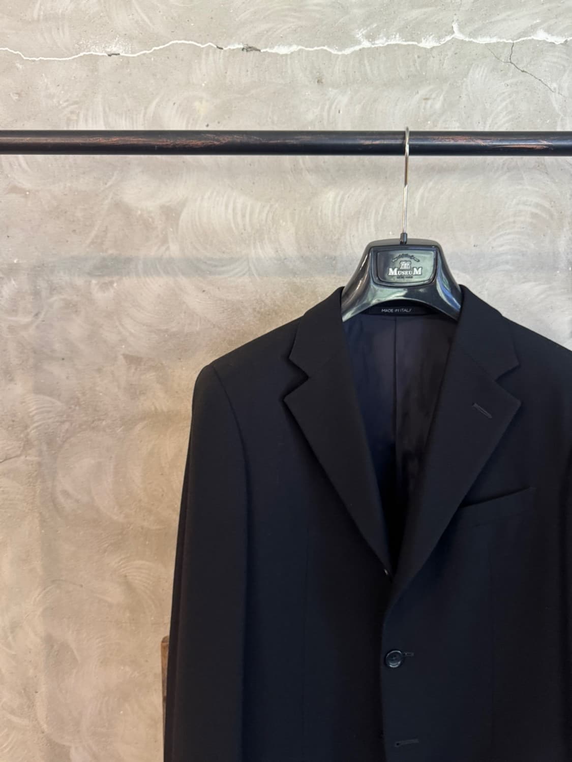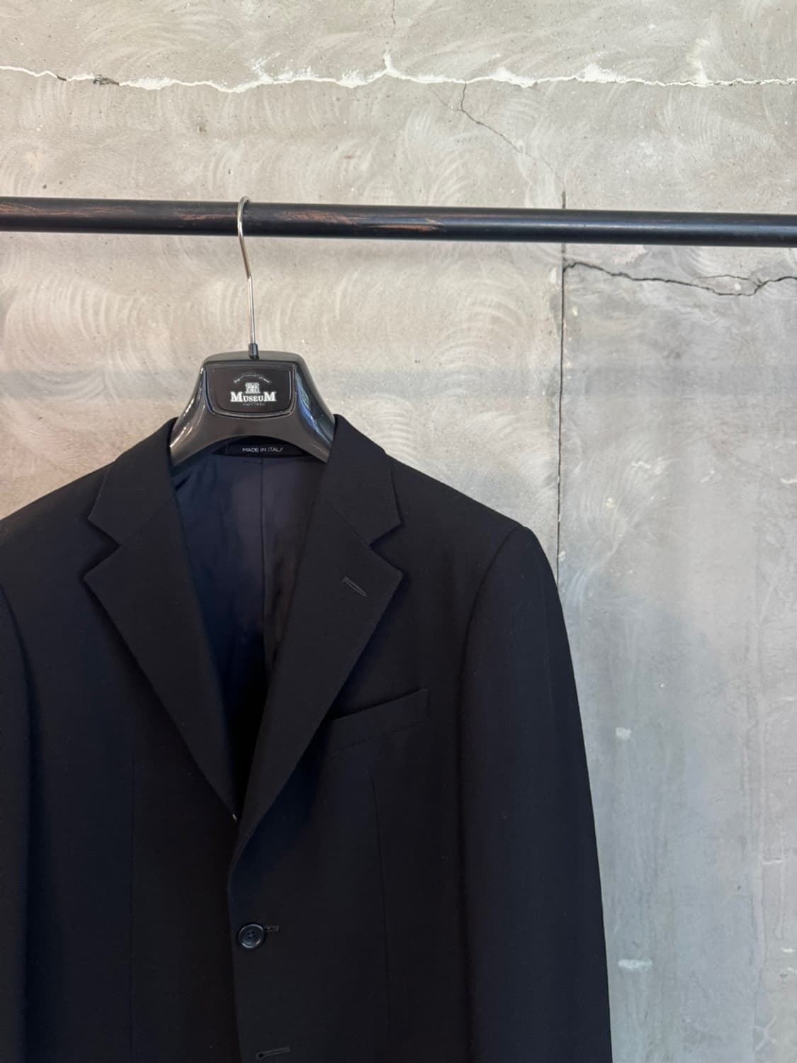 매트한 광택감을 지닌 플란넬패브릭을 배경으로 연출된 아르마니 꼴레지오니의 블레이져입니다. 모던함을 위한 틀을 먼저 구성하고 낸 결과물과는 다른 본인의 지향점을 구체화하다보니 출현한 모던함과의 차이를 착용해보세요. 보다 긴 생명력을 지닌 자켓임을 실루엣으로 증명 될 듯 싶어요. 사이즈 국내 정사이즈 100 권합니다. 감사합니다.