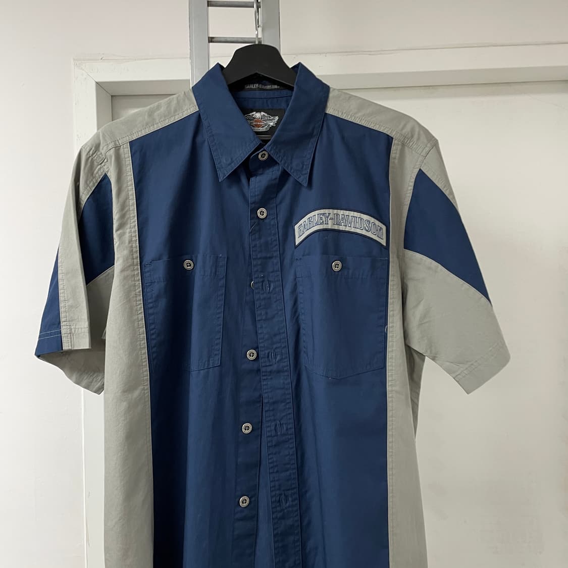 *할리데이비슨 반팔 셔츠 M *제품 사이즈 : M *제품 실측 어깨 : 47 가슴 : 57 소매 : 26 기장 : 76 *판매가격 : 65,000