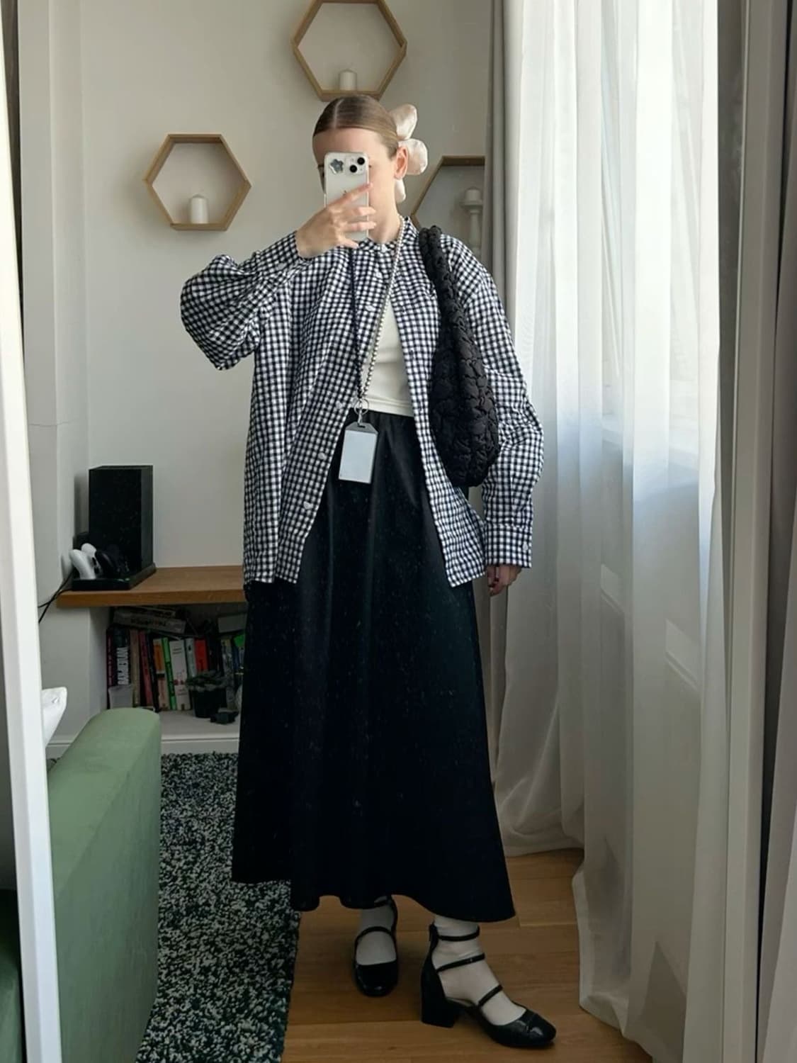 1회 착용하였습니다:) 오버핏 레이어드용으로 구매하였어요 스타일이 맞지않아 판매합니다! 코디레퍼 같이 올려두어요🥹 • 드라이+스타일러 완료 • 오염, 이염 없습니다