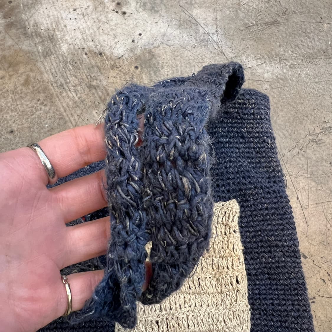 티그레 브로캉테의 귀여운 가방입니다. 헴프 특유의 거친 느낌이 살아있고 포인트 주머니에 조금의 얼룩이 있는 상태입니다. 색상이 단조로워 그 어떤 코디에도 다 어울릴 아이템입니다. 사이즈 40 x 36 x 27
