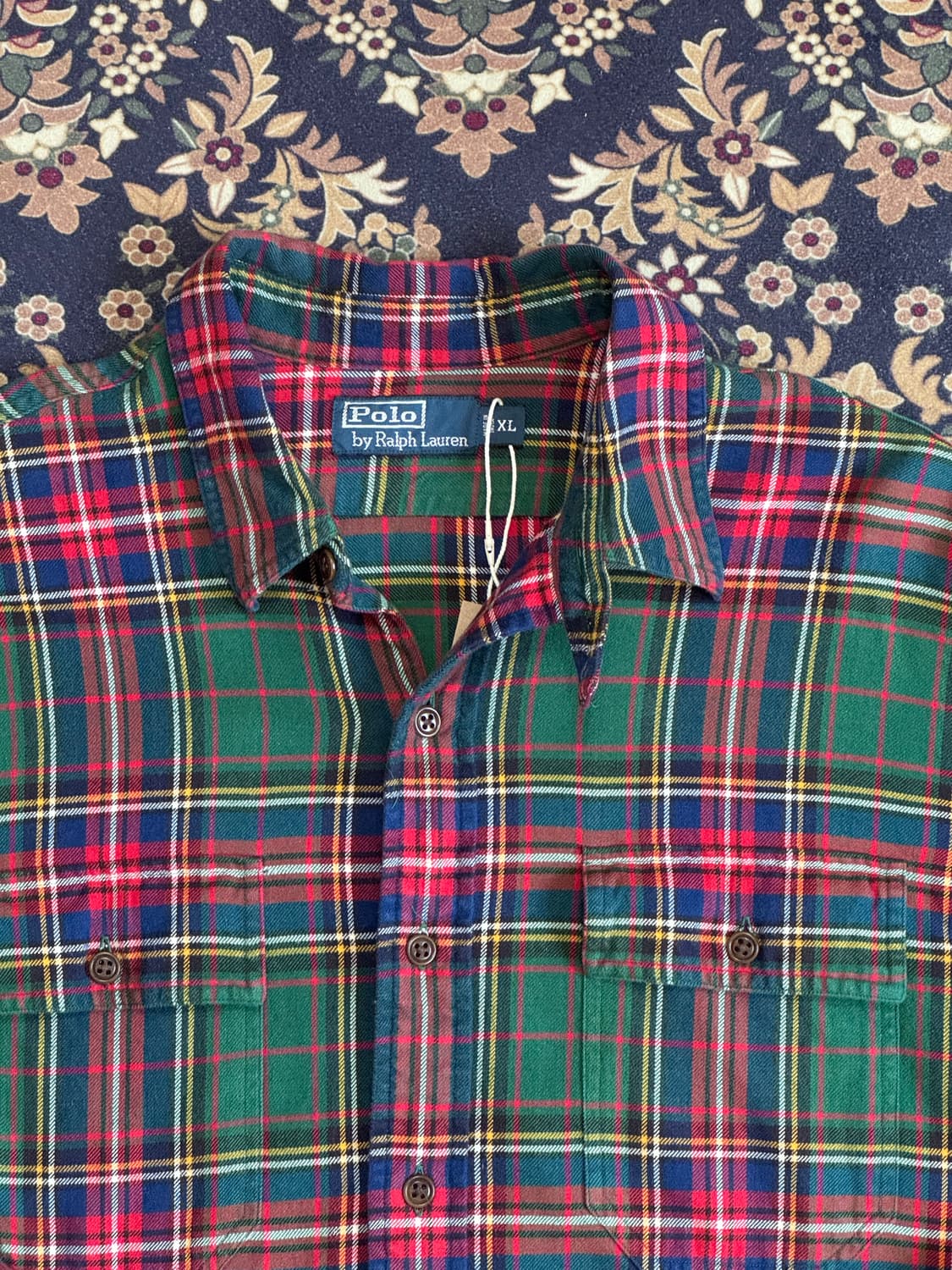 폴로의 플란넬 워크셔츠입니다. 적당히 톡톡한 플란넬 원단과 색깔로 여름을 제외한 삼계절에 활용하시기에 좋아보입니다. 빈티지 워크셔츠의 디테일인 친스트랩과 밑단의 비조디테일이 빡센 오리지널 빈티지의 감도와 캐주얼웨어의 감도를 밸런스 있게 잘 잡아주고 있습니다. (너무 옛날옷같지도 않게, 너무 요즘 옷 같지도 않게!) 밑단이 일반 셔츠처럼 곡선으로 마감되지 않고 일자에 가까운 형태를 띄고 있어, 빼서 입으셔도 어색함 없이 착용하실수 있다는 점 또한 매력적이네요. 데미지나 오염 없는 컨디션으로 입고 되었습니다. 감사합니다. 표기 XL 어깨 48 가슴 64.5 기장 78 팔 65 . . . Price: 70,000