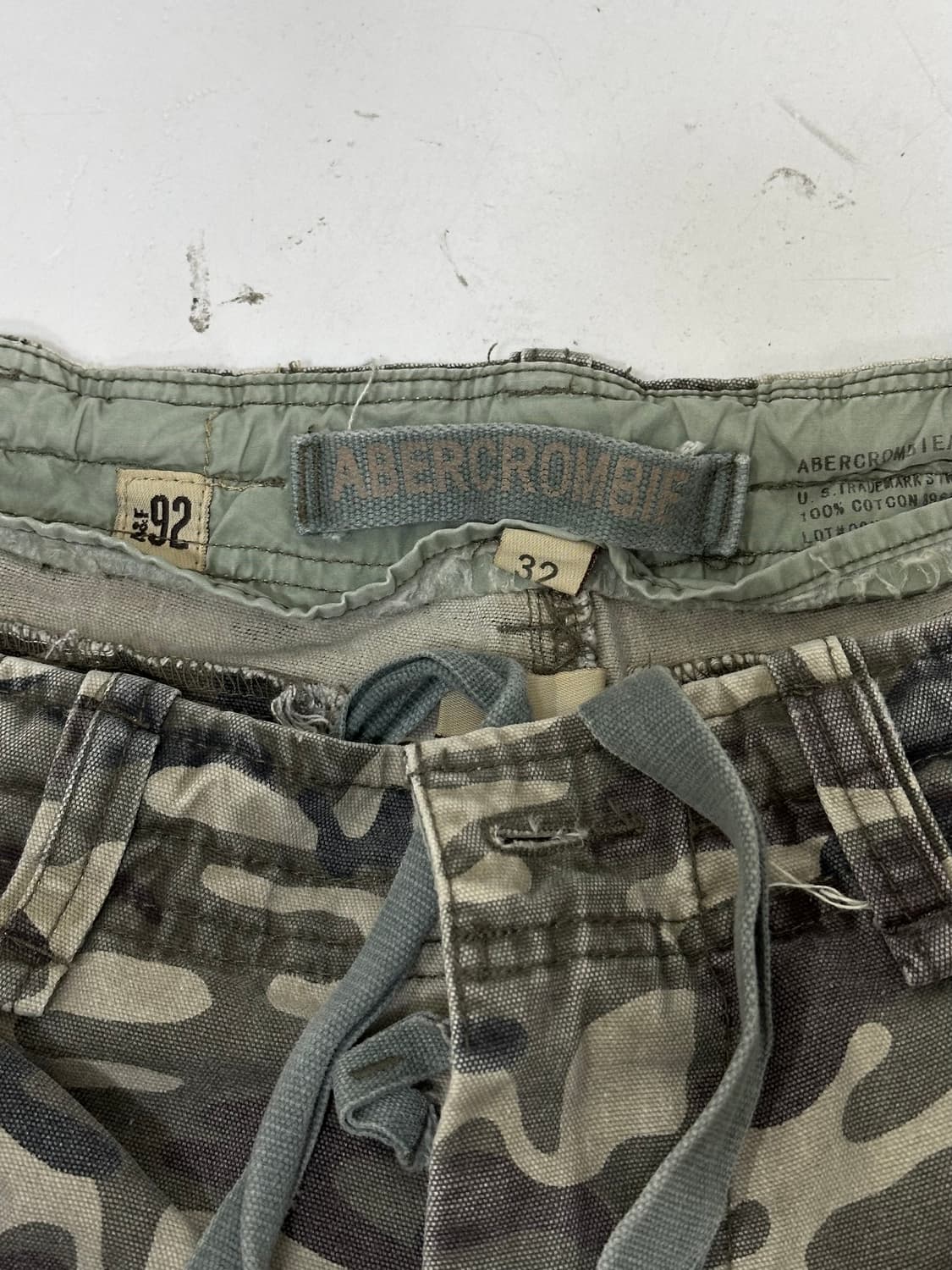 빈티지 카키 멀티 포켓 와이드 카모 카고 팬츠