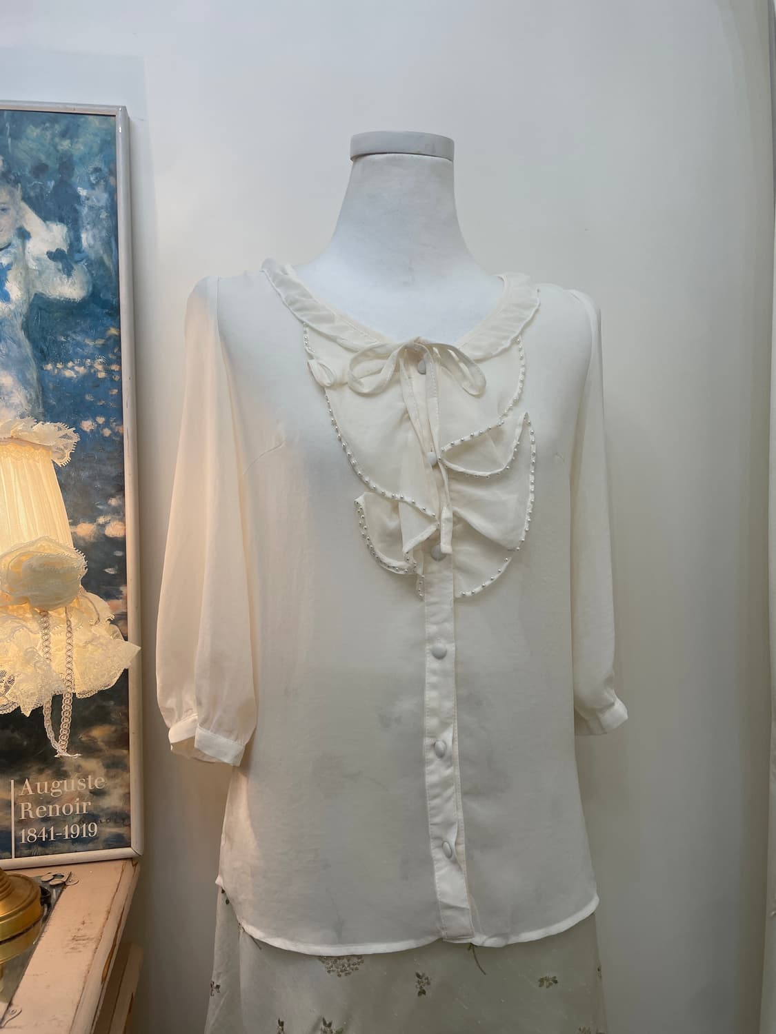 ivory ruffle pearl point lovely blouse(size-F) 아이보리 러플 진주 포인트 러블리 블라우스 #일본빈티지 #발레코어 #페어리코어 #모리걸 #러블리 #코티지신드롬