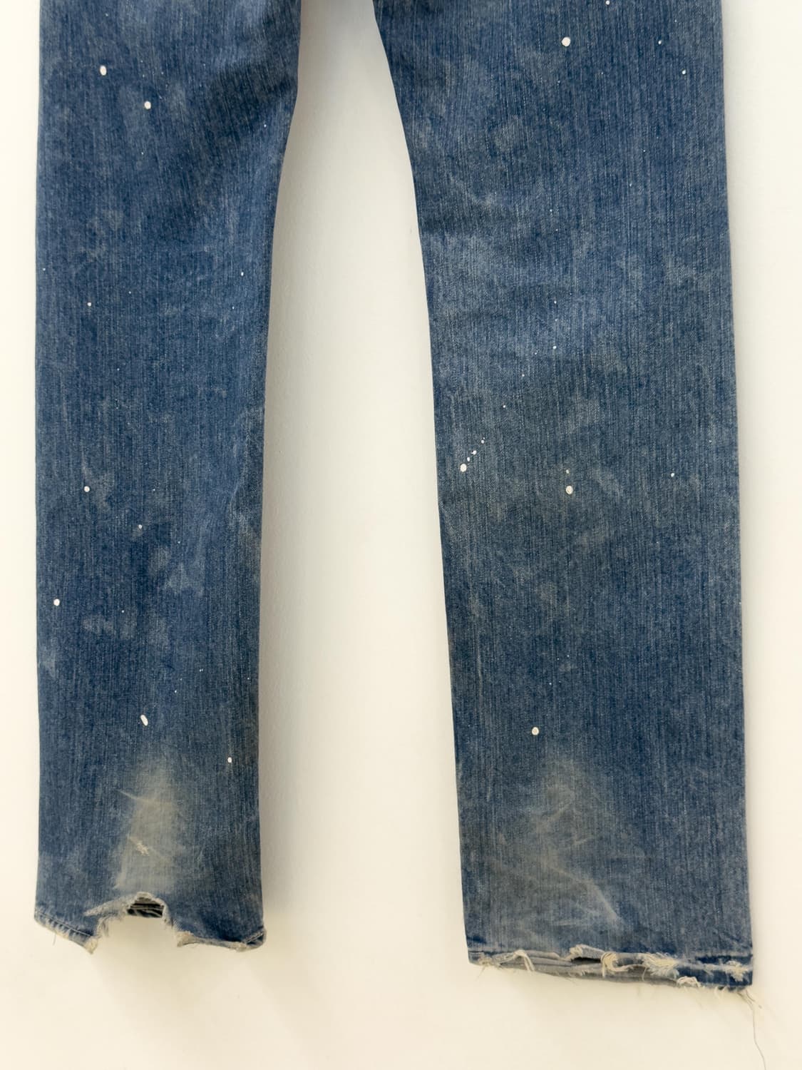 이터널의 퍼티그 데님 팬츠 입니다. 밀리터리 디테일을 데님팬츠에 적용시킨 디자인으로, 빈티지한 분위기가 매력적인 아이템 입니다. 실측 단면 사이즈 (측정 방식에 따라 1-2cm 오차가 있을 수 있습니다) 허리33inch/43cm 밑위29cm 허벅지32cm 총장110cm 밑단22cm cotton 100%