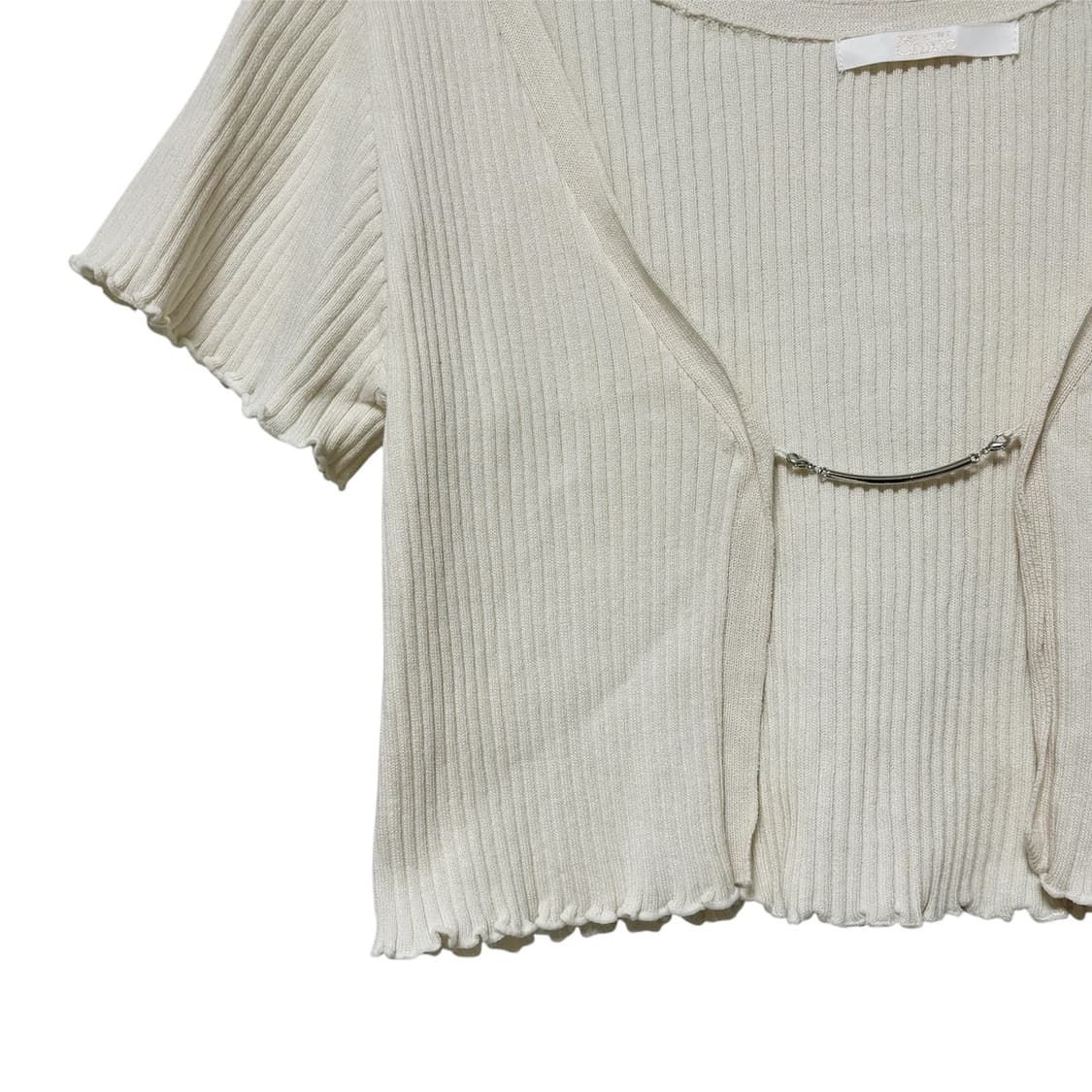 🪧 어깨 37 가슴단면 38 총장(옆넥점) 38 소매장 14 소매밑단 16 암홀 19 🪧 레이온 75, 나일론 25/ 신축성 좋은 골지소재 🪧 라벨 표기 사이즈 F,66까지 착용가능 🪧 상태 우수 ⊹ 가슴쪽 유니크한 니켈 고리 장식이 달린 골지 소재 크롭 볼레로 ⊹ 여름에 나시위에 가볍게 걸치기 좋은 디자인 ⊹ 걸고리로 장식 탈착 가능 ⊹ 쫀쫀한 골지소재로 신축성이 굉장히 좋아요 ⊹ 크리미한 아이보리 컬러감, 밑단 자수마감으로 자연스러운 프릴처럼 보이는 디테일로 여성스러운 느낌도 줘서 이뻐요 #볼레로#레이어드#jpn