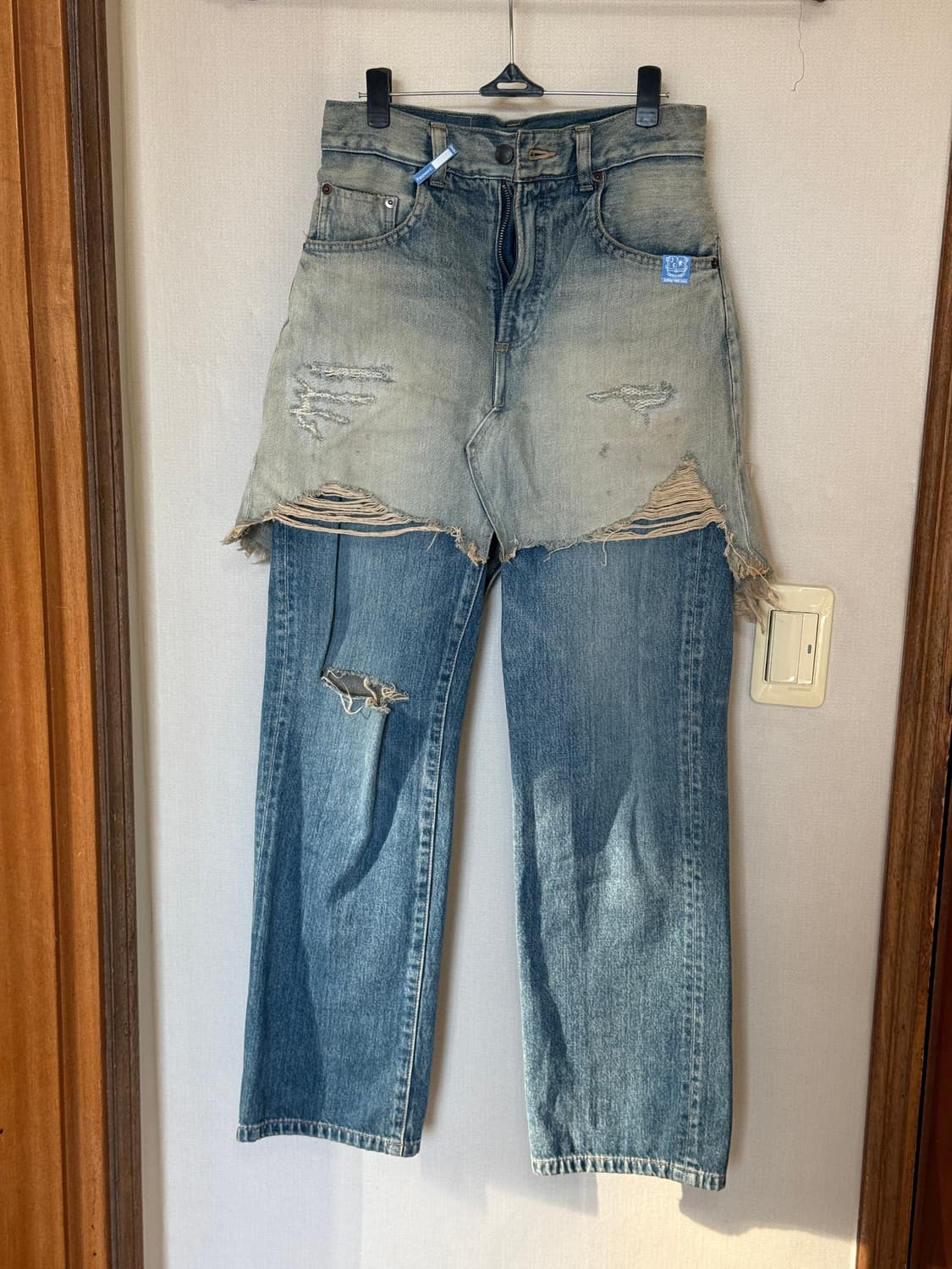 [M]준야와타나베 백 절개 재구축 데님 팬츠