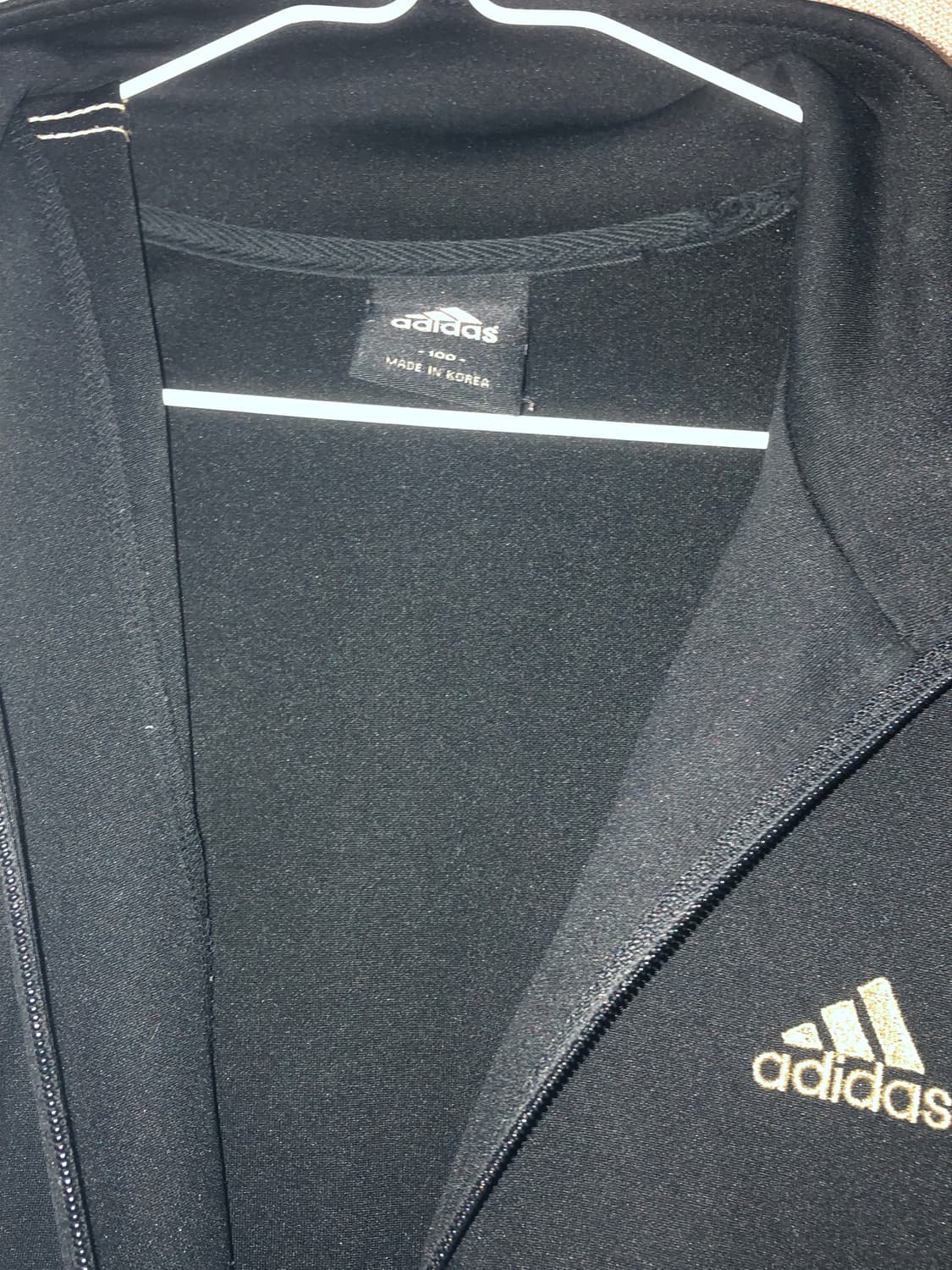 아디다스 금색 줄인 져지 입니다! 사이즈 100입니다 지퍼 손잡이 부분만 조금 바랬습니다 나머진 깔끔해요! 남성분들 여성분들 다 잘 입으실 수 있는 공용 사이즈 입니다