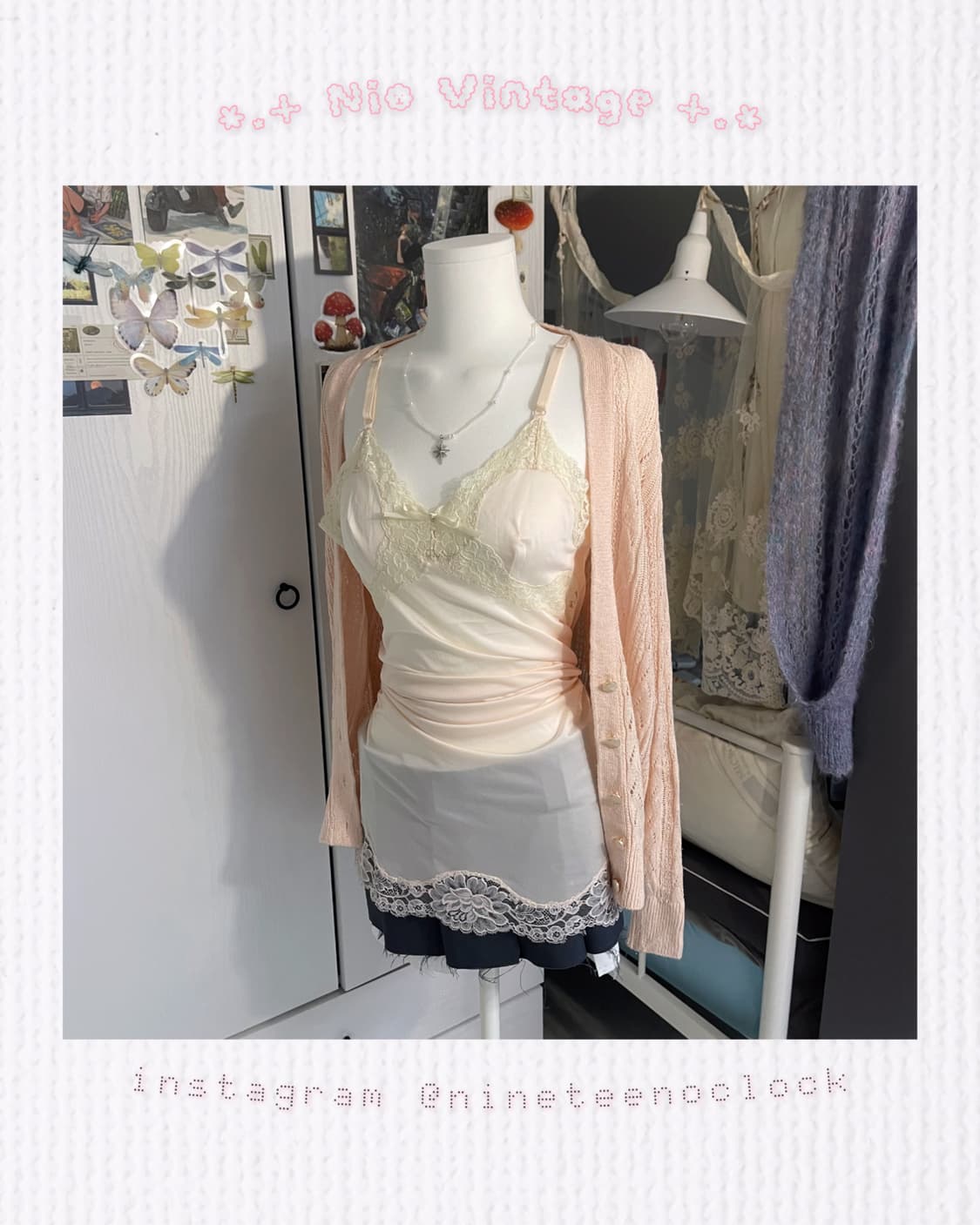 Vintage floral lace ribbon slip 분홍빛이 도는 옅은 피치크림 컬러 슬립원피스입니다! 바스트쪽의 X자로 들어간 크림색 레이스가 너무 귀엽고 예쁜 제품이랍니다🫧 이너로 착용했을 때 큼직한 리본과 레이스가 잘 보여서 러블리한 무드로 코디하기 좋아요🤍 예쁜 슬립은 잠옷으로도 좋지만, 개인적으로 레이어드 해서 이너로 활용하거나 원피스로 착용해도 너무 예쁜거같아요🫧 코케트 스타일 코디에 찰떡이랍니다🎀 이렇게 예쁜데 집에서만 입기엔 너무 아쉽잖아요!! *이번 제품들은 하나같이 화사하고 맑은 핑크 컬러들이라,, 색감잡기가 너무 너무 어렵네요 흑흑,,😞 문의로 컬러 물어봐주시면 최대한 실제 색감에 가까운 컬러 확인 도와드릴게요 :) *가디건 다음주 업로드 예정 제품 / 선구매 가능 sɪᴢᴇ : 가슴단면 41 / 총장(어깨끈제외) 80 ᐟᐟᐟᐟᐟᐟᐟᐟᐟᐟᐟᐟᐟᐟᐟᐟᐟᐟᐟᐟᐟᐟᐟᐟᐟᐟᐟᐟᐟᐟᐟᐟᐟᐟᐟᐟᐟᐟᐟᐟᐟᐟᐟᐟᐟᐟᐟᐟᐟᐟᐟᐟᐟᐟᐟᐟᐟᐟᐟᐟᐟᐟᐟᐟᐟᐟᐟᐟᐟᐟᐟᐟᐟᐟ • 제품 문의는 언제든지 메시지 부탁드립니다 :) • 구매 전 프로필의 공지사항을 꼭 숙지 부탁드리며, 거래 진행 시 공지사항 내용에 응해주신 것으로 간주됩니다! #핀터레스트 #모리걸 #하구미 #히메카지 #사와코 #달천 #캐캐체 #아오이유우 #로걀 #오네갸루 #y2k #긱시크 #보호시크 #페어리 #그런지 #펑크 #오리엔탈 #히피 #에스닉 #고스로리 #빈티지너드 #히메갸루 #라떼 #모카무스
