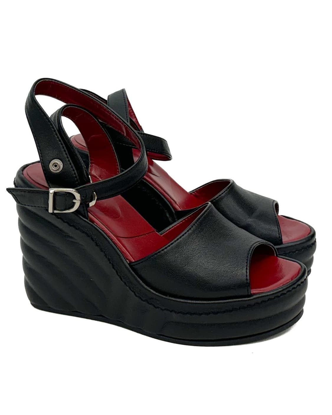 DESCRIPTION -레더 스트랩 -웨지힐 MATERIALS -Leather 100% SIZE(cm) -앞 굽 2.5 뒷 굽 10.5 -235-240