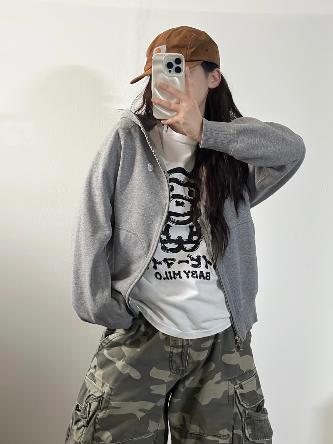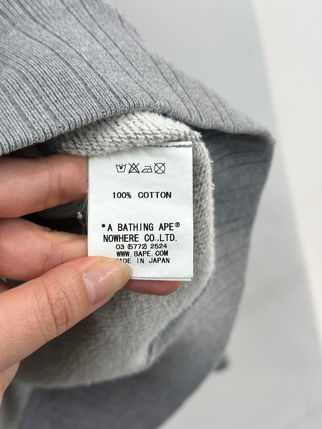 R-: 베이프 멜란지그레이 미니사루 후드집업 📎 200,000 📎 총장: 58 가슴: 52 어깨/팔기장: 72 (S) ( 측정위치 및 방법에 따라 1-3cm 오차가 발생할 수 있습니다. ) 📎 컨디션: 전체적으로 상태 좋아요. ( 핸드폰 밝기를 최대로 늘려주셔야 실물과 가장 근접합니다.) 서치기준 로로즈 유일매물 제품으로 확인되며 와플짜임의 후드와 실버 미니사루 , 라운드 아웃포켓 , 와이드 골지 시보리등 귀여운 무드로 착용하기 좋은 디테일들이 많은 제품입니다. 캐주얼&데일리하게 착용해 주기 좋아요 :)