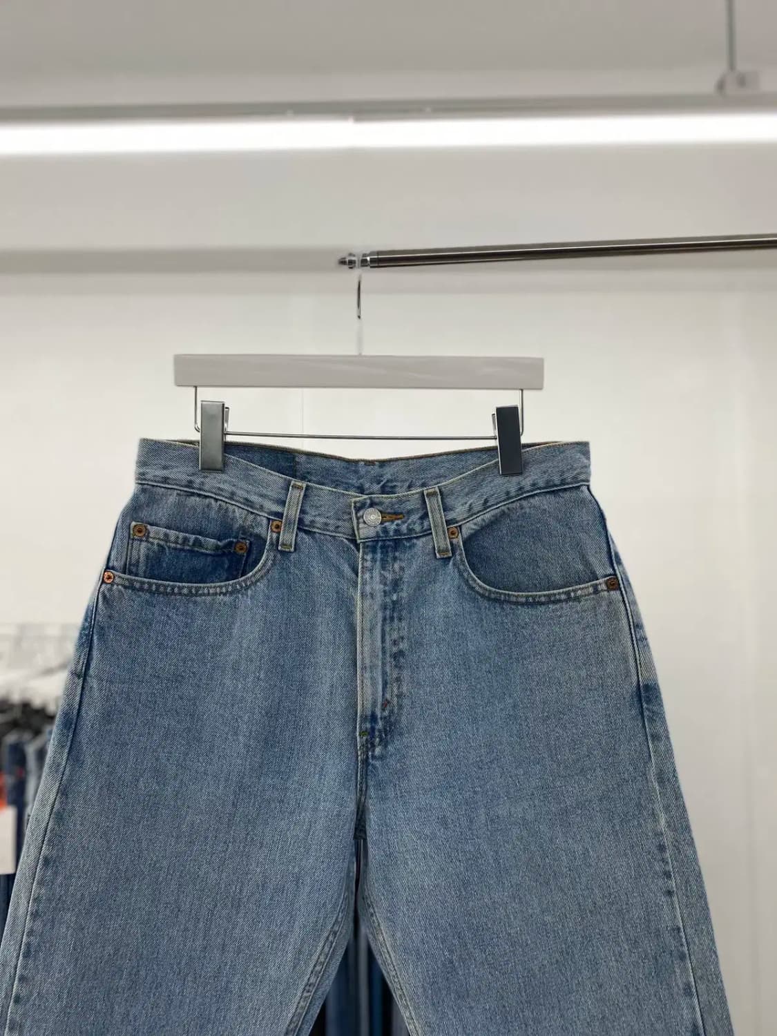 • 505 • 100%코튼 • 포켓 5개 • 지퍼플라이 • 90년대 생산 • 총장이 길경우 밑단을 가위로 조금씩 잘라서 입어보신 후 세탁하시면 실밥이 자연스럽게 연출됩니다. • 손세탁 or 드라이클리닝 • 상세사이즈 허리37 밑위27 허벅지30.5 밑단23 총장58 • 여성모델(키168/상의44~55/ 하의26~27인치) • 남성모델(키184/상의105~110/ 하의32~33인치)