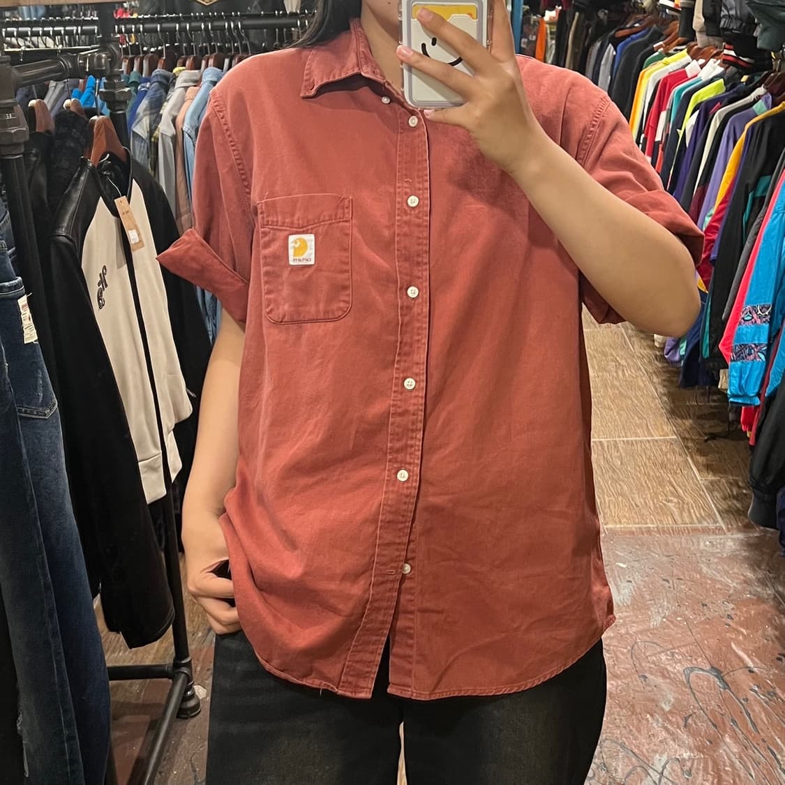 #칼하트 #칼하트셔츠 칼하트 반팔셔츠 핑크 #빈하구매가능 L 🏷총장 : 78cm 🏷가슴단면 : 60cm 🏷모델스펙 : 164cm ₊ ₊ ₊ ₊ ₊ ₊ ₊ ₊ ₊ ₊ ₊ ₊ ₊ ₊ ₊ ₊ ₊ ₊ ₊ ₊ ₊ ₊ ₊ ₊ ₊ ₊ ₊ ₊ 그렇게 화려하지 않은 인디도핑크 컬러가 유니크하며 여름이랑 어울려요~~ 반팔로 입어도 좋고 아우터처럼입어도 이뻐요!❣️ ₊ ₊ ₊ ₊ ₊ ₊ ₊ ₊ ₊ ₊ ₊ ₊ ₊ ₊ ₊ ₊ ₊ ₊ ₊ ₊ ₊ ₊ ₊ ₊ ₊ ₊ ₊ ₊ 🐰 서울 마포구 어울마당로 131-1 지하 1층 빈티지하이 Open 12:00 - 23:00 🐰 빈티지 특성상 교환/환불이 어렵습니다. 🐰 배송은 2-3일 정도 소요되며, 주말/연휴 기간에는 더 소요될 수 있습니다. 🐰 전제품 세탁 / 스팀 / 보풀제거 후 판매중이니, 바로 착용해도 됩니다. 🐰 사이즈 측정하는 방법에 따라 1-3cm 정도 오차가 발생할 수 있습니다.