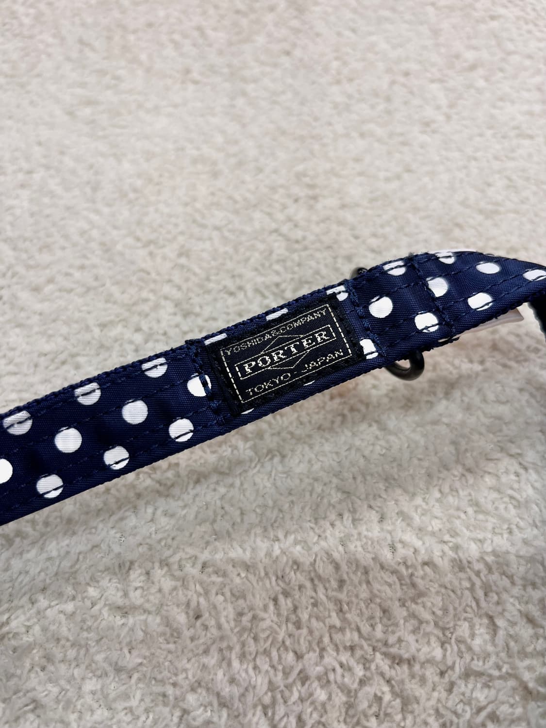 PORTER dog leashes - dot -미사용품 -스트랩 길이 125 cm 전체적으로 도트패턴이 프린팅된 리드줄입니다. 사용감이 아예 없는 미사용품입니다.