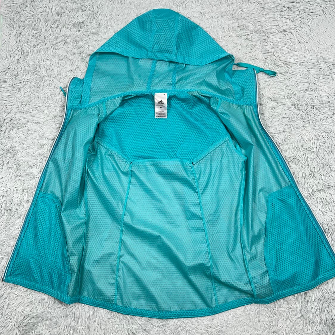 아디다스 XS / 55 가슴반품 48 길이 62-66 (후드 제외) 톡특한 엠보싱 질감의 경량 후드 바람막이입니다. 후드는 고정형인데 옷깃 안으로 장착되어 위치가 독특합니다. 일반적으로는 후드에 스트링이 있지만 옷깃에 스트링을 조이면 후드가 고정되는 방식입니다. 등에 공기순환을 위한 벤틸레이션 시스템이 있습니다. 내피는 코팅 나일론 소재로 방수 기능을 높혔습니다. 터콰이즈 컬러 너무 예쁘고 아주 깨끗한 A급 컨디션입니다. [ 구씨고르고 판매 정보 ] 🥼 모든 의류는 깨끗하게 세탁한 후에 보내드립니다. 패딩의 경우 리프레시까지 해서 발송해 드립니다. (일부 대형가방, 신발 등 제외) 📐 최대한 실측 포함 사이즈 정보 알려 드립니다. 사이즈 미스 등의 사유로 반품, 환불 불가해요. 🚚 일반택배 마감시간 정오 12시 오전 주문은 당일 발송 및 수거 공휴일 및 오후 주문은 익일 오전 발송됩니다. 🪡 꼼꼼하게 상품을 검수하여 하자, 오염 없는 상품만을 판매하고 있으며 하자, 오염이 있을 경우 상품 정보 내에 자세히 알려 드립니다. 세컨핸드 제품 특성상 눈에 띄지 않는 부분이나 미처 체크 못한 부분이 있을 수 있습니다. 👫다양하고 좋은 상품 구경하시고 팔로워 맺어주시면 업데이트 내용 빠르게 받아보실 수 있어요. 👀 판매자 다른 상품도 꼭 보고 가세요. 이쁘고 저렴한 옷 정말 많아요. 일부 상품은 등록 후 바로 판매됩니다. 마음에 드시는 상품 찾으시면 바로! 문의주세요.