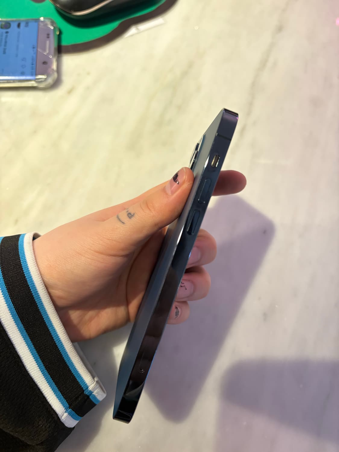아이폰 12프로 128기가 퍼시픽 블루입니다. 배터리 효율 70프로이고 큰 찍힘이나 파손된 부분 기능 하자 없습니다! 하자라고 하면 찍힘이나 까진 부분은 아니지만 케이스 사용하면서 생긴 것으로 예상되는 검은색 마커(?) 자국 같은게 있습니다. 크게 눈에 띄진 않지만 사진 첨부하니 참고 해주세요. (미확인으로 인한 환불 반품 불가합니다.) 제가 검수해서 파악하지 못한 생활 잔 기스 있을 수 있어 사진 첨부합니다. 사진 여러장 올려두니 꼭 확인 해보고 구매 결정 해주세요. (사진은 보호필름 제거 후 찍었습니다.) 사용 하는 내내 케이스 끼우고 강화필름 붙인채 사용했습니다. 택배 시 깨져있는 강화필름이 붙여진 상태로 하드케이스 끼워서 뽁뽁이 포장하여 보내드립니다. (택배비 별도/ 계좌거래 시 택포 해드려요!) 구의,한양대, 왕십리,아차산역 직거래 가능합니다. 상태 확인하고 구입 가능합니다. 환불 불가