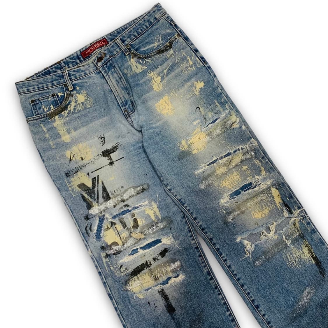 • 90s 올드스쿨 빈티지 오버와이드 진청 절개 팬츠