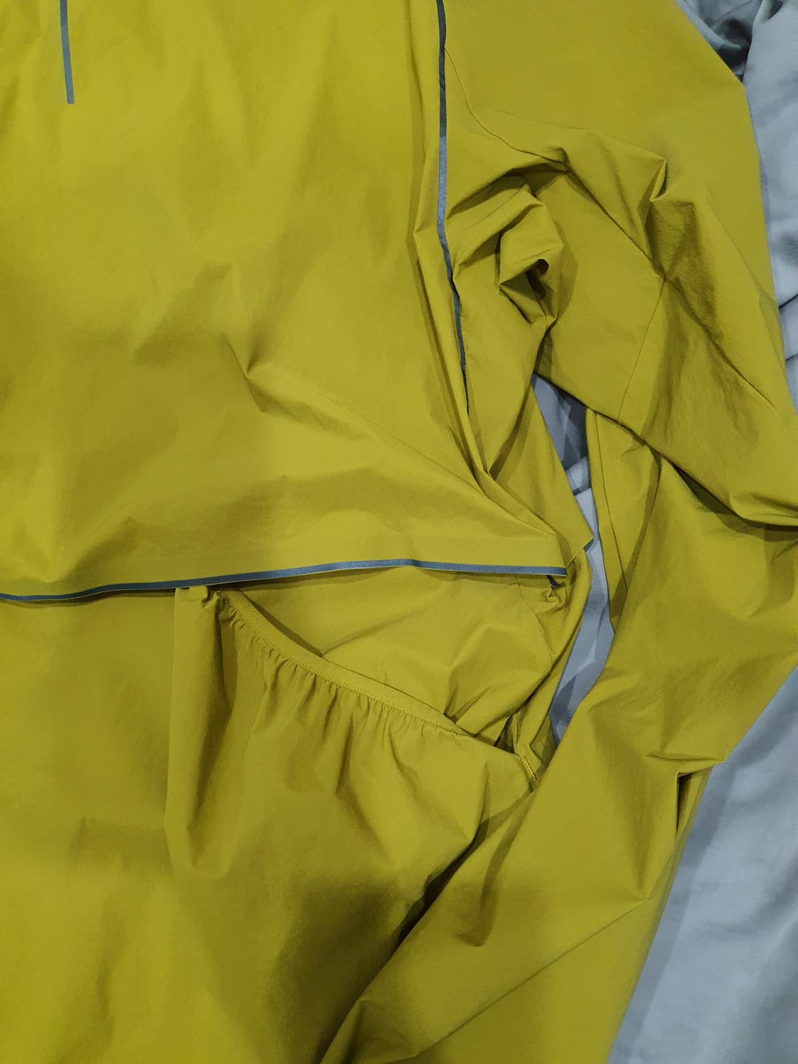 룰루레몬 기능성바람막이 사이즈 L 국내 100-105 가슴 55정도나옵니다 고기능성원단에 벤틸기능도 많아서 바람잘들어오는 제품입니다 등쪽도 따로 기능성원단으로된 고급형입니다 하단에 스트링잇어서 조절됩니다